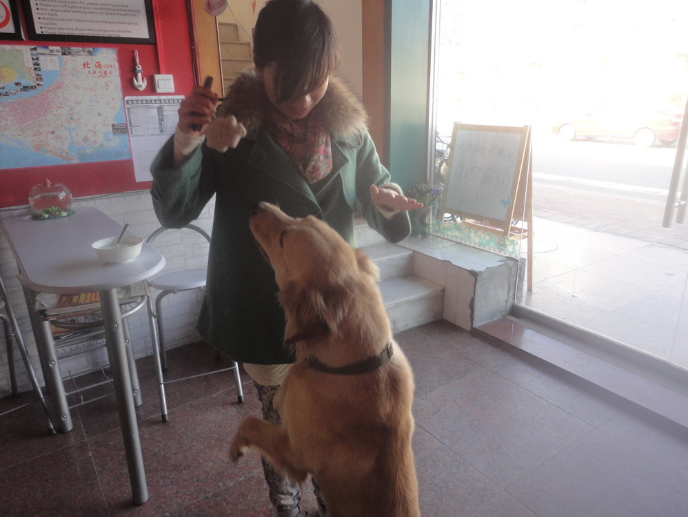 离开的那天,可爱的店长的金毛,似乎对我的手机链灰常感兴趣,视线一直没移开过。