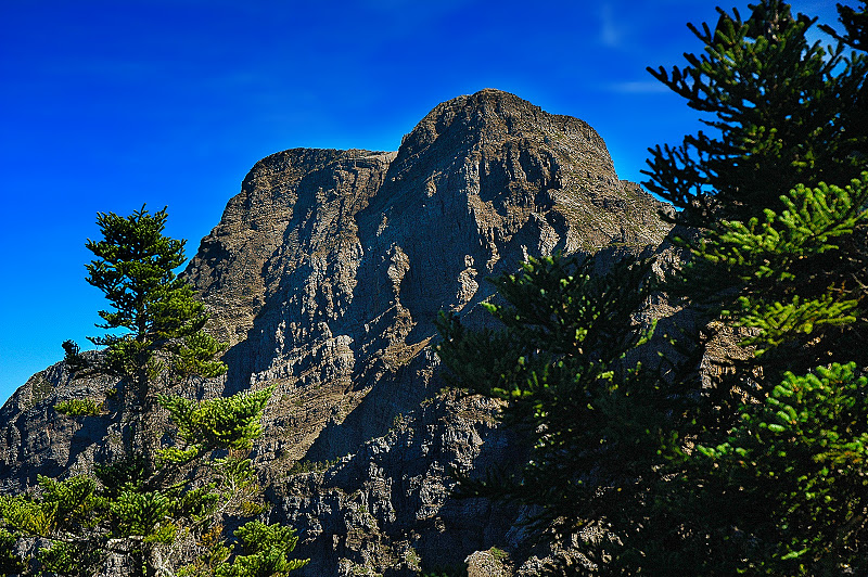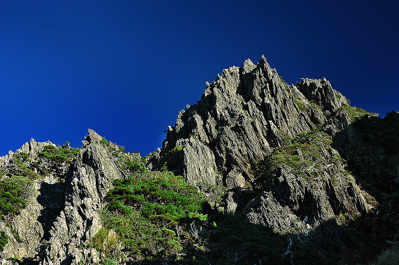 -- 玉山東峰 -- 玉山東峰,海拔 3,869 公尺,百岳排名第三,「十峻」之首,為玉山東稜上的最高峰。玉山東峰在日治時期名為「東山」、「新高東山」、「台東新高」。 玉山東峰由硬砂岩層疊構成,形勢陡峭,其中有三面是斷崖,裸露的岩石上寸草不生,山體岩壁崢嶸,巍峨險要,台灣登山家刑天正稱其為天壘峰。