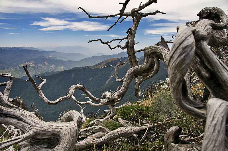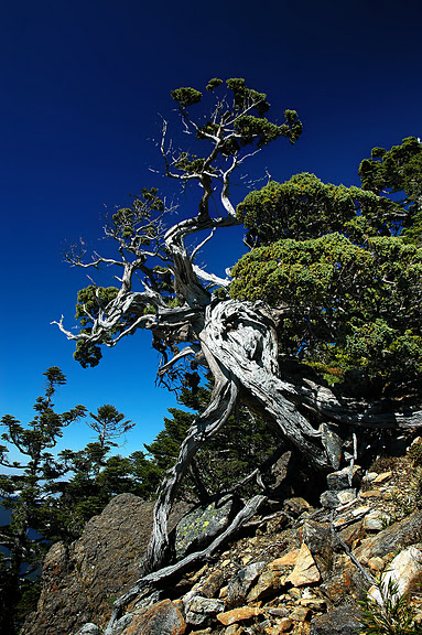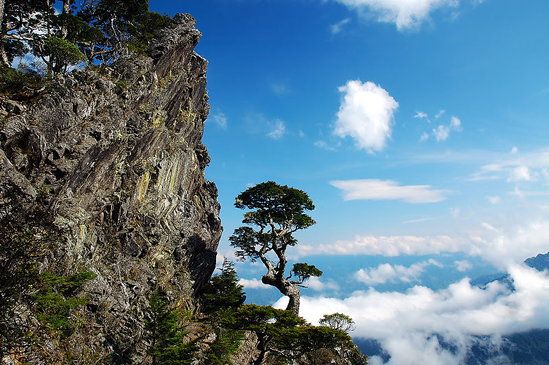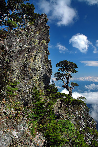 -- 玉山圓柏 -- 玉山圓柏(JuniperuSqyanata)生長高度大約在海拔 3000 ~ 4000 公尺之間,全島 3400 公尺以上的高峰都可見其蹤跡,其中又以玉山、雪山、秀姑巒山、馬博拉斯山、南湖大山、中央尖山及關山等高山分布最密集,是台灣分布海拔最高的樹種。