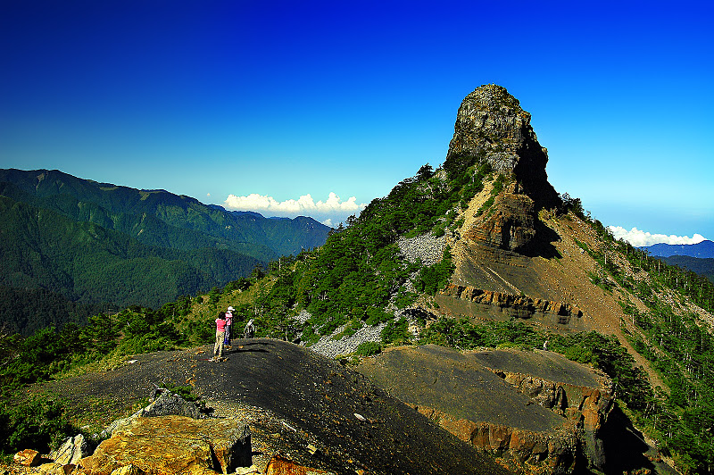 -- 鳳尾岩 -- 鳳尾岩,標高 3,846 公尺,座落於玉山主峰與東峰之間必經之路上,是玉山主峰和東峰間的重要地標,照片中位於右側的山峰為玉山東峰。