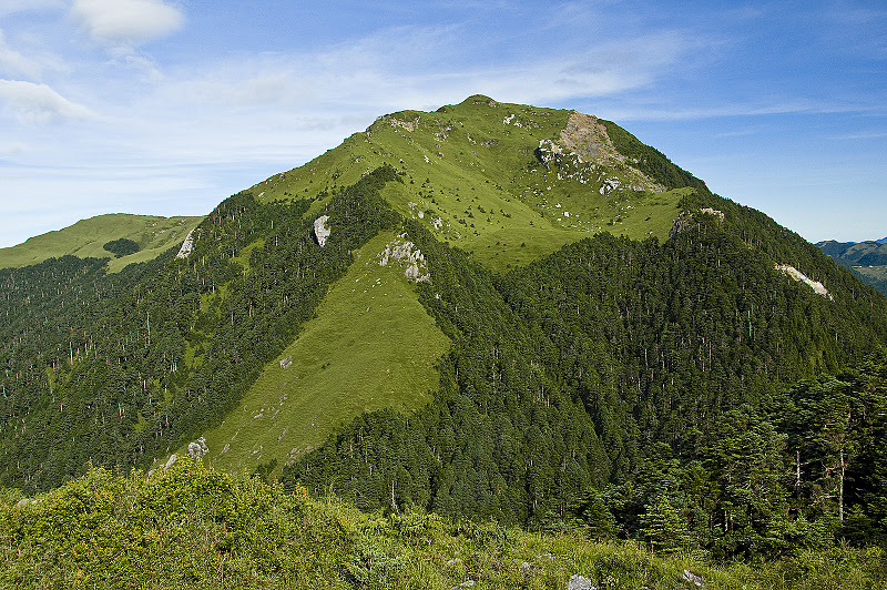 -- 南玉山 -- 南玉山,標高 3,383 公尺,二等三角點,百岳排名第 38,十潤之四。 南玉山為玉山西 南稜上的最後一座標高三千公尺以上山頭,自塔塔 加登山口 望過去,南玉山連著小南山至玉山的稜線上,是極為險峻的斷崖地形。然而實際走在南玉山的稜線上,則是一大片緩美的箭竹草坡,一路走來令人心曠神怡。