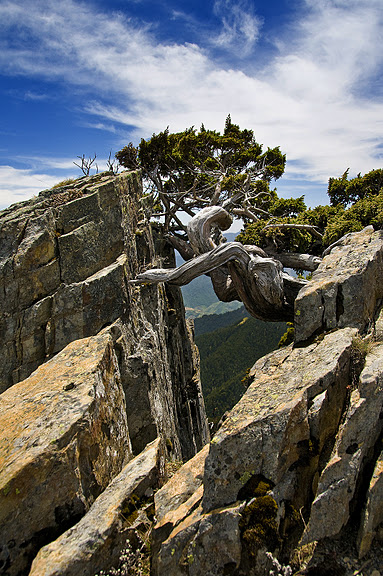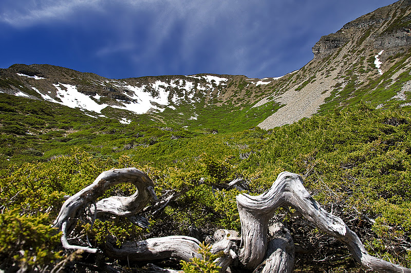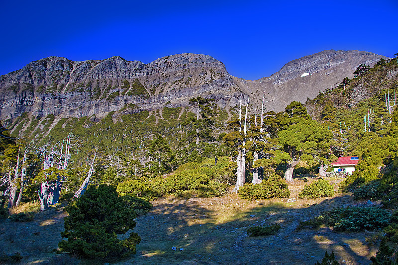 -- 玉山圓柏 -- 玉山圓柏生長高度大約在海拔 3,200 ~ 3,990 公尺之間,台灣 3,400 公尺以上的高峰都可見其蹤跡,其中又以玉山、雪山、秀姑巒山、馬勃拉斯山、南湖大山、中央尖山及關山等高山分布最密集,是台灣分布海拔最高樹種。 玉山圓柏是高山上最高大的常綠針葉樹,其形態可分喬木及灌木兩類,為喬木者,高度可達35公尺以上,樹徑約 1 ~ 3 公尺,樹木形呈圓柱形。為灌木者,因其生長環境惡劣,在強勁的風勢下,樹幹常呈現不規則蜷曲狀匍匐在地。