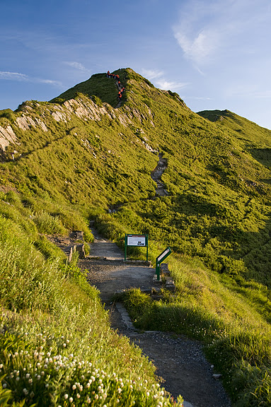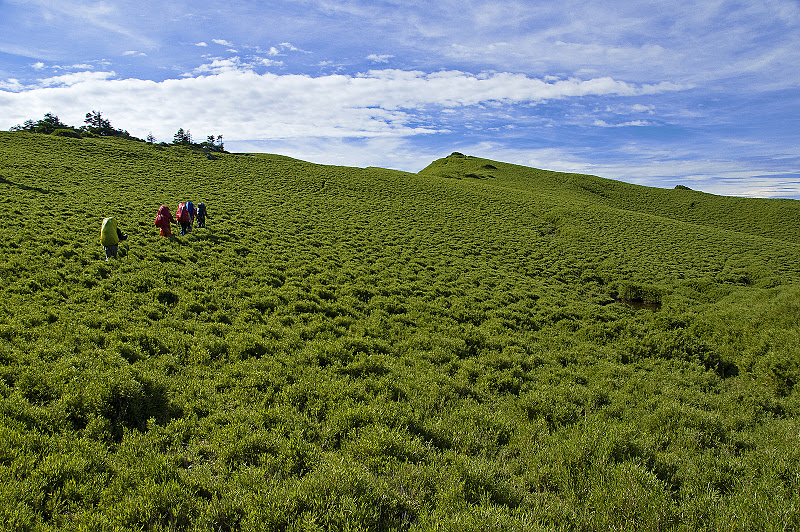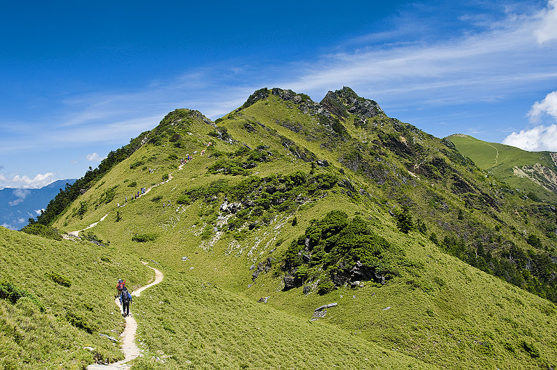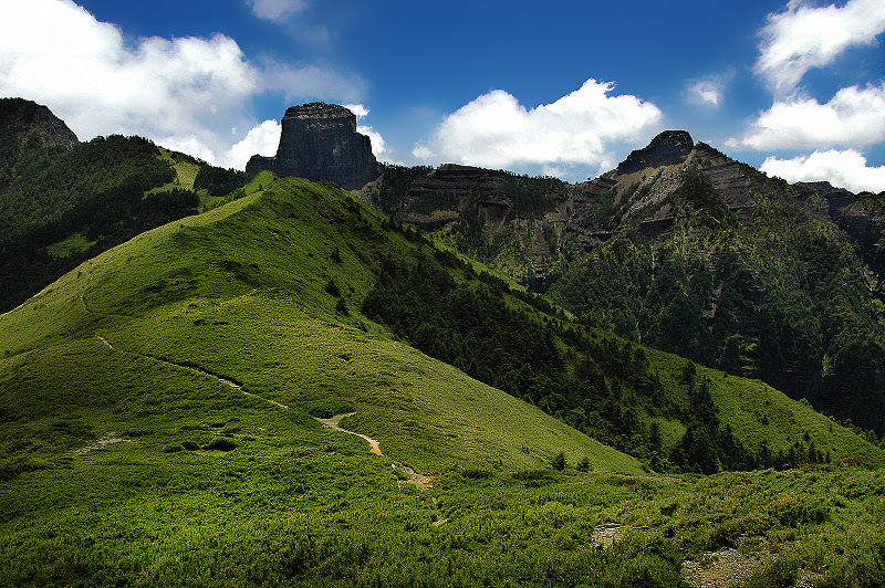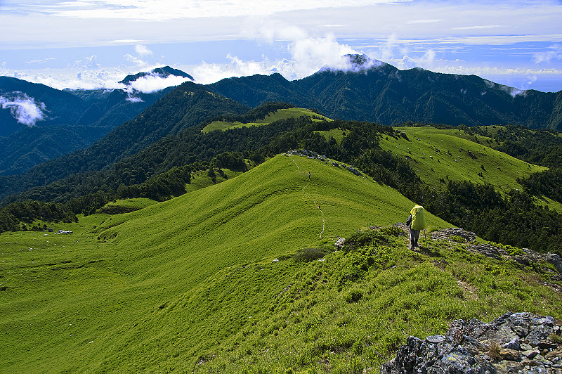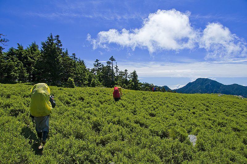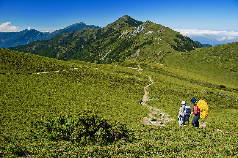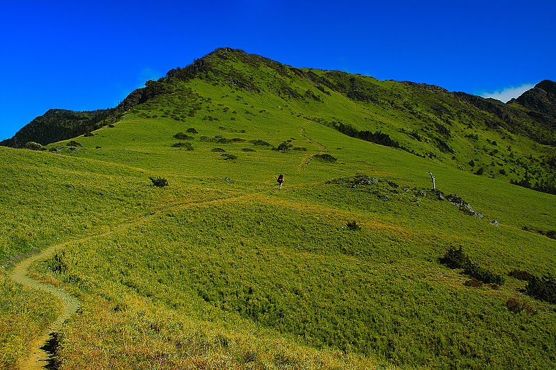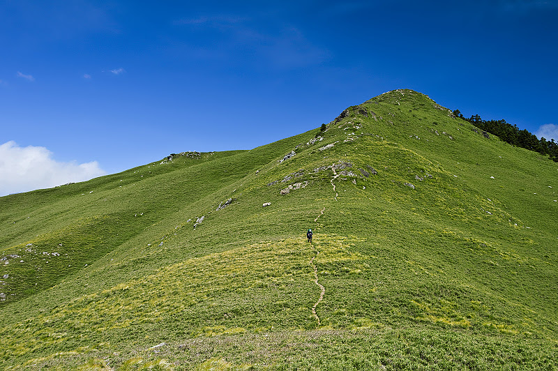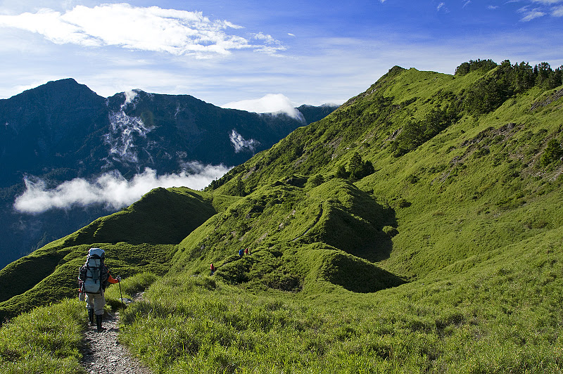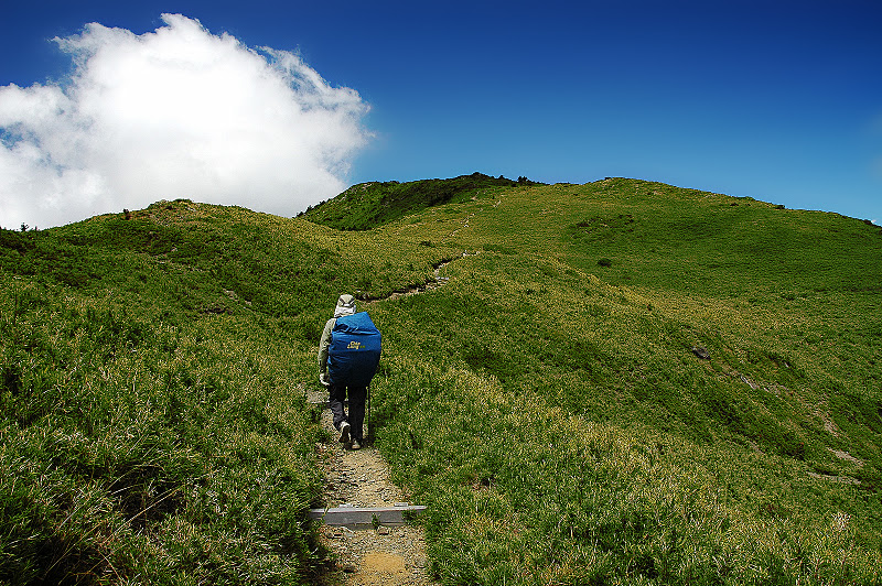 爬百岳最開心的莫過於走在大草原上,視野寬廣,景色宜人。再者,草原上坡度起伏不大,平坦好走,讓登山客有一個喘息休息的機會。