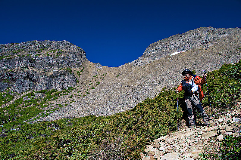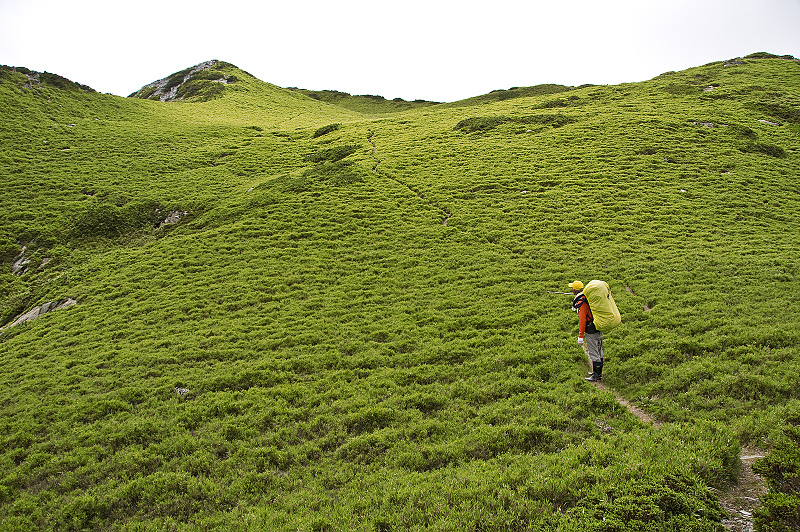輕裝單攻的登山客,神情輕鬆愉快,快樂的表情滿溢於臉上。
