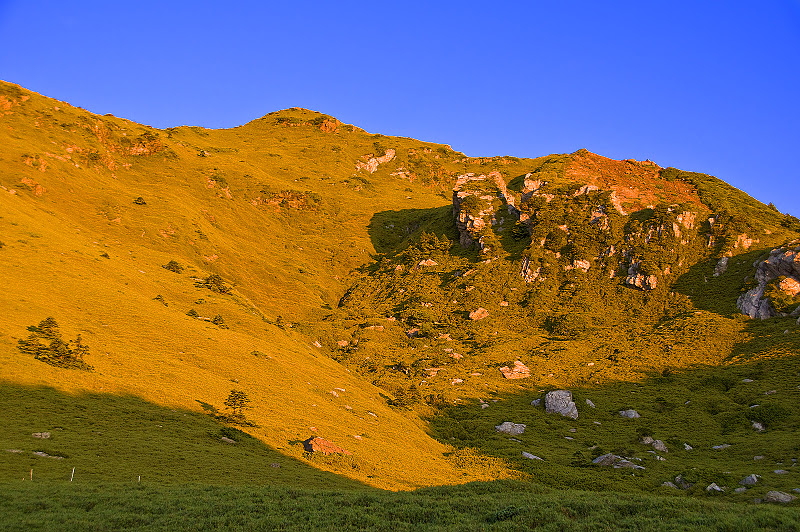 從三叉山往向陽山的途中,為一廣大草原坡,走來心曠神怡。