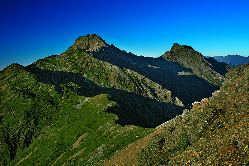 -- 台灣屋脊 -- 從圓峰望玉山主峰(左)與玉山東峰,台灣第一與第三高峰就在你眼前,能不感動。