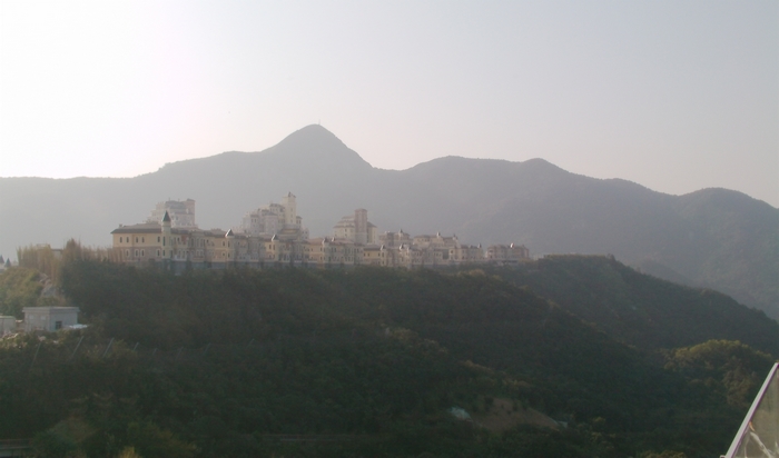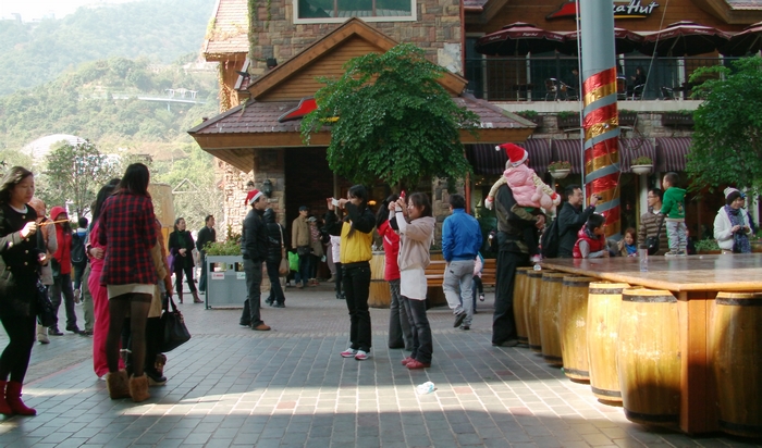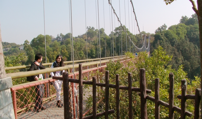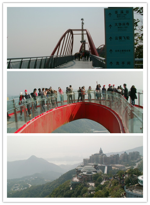 从山底到山顶的缆车,风景最好的是大峡谷缆车站到云海高地那里,坐的是那种露天没玻璃的缆车,可以直接看到深圳 大梅沙的海,早上的阳光照射在海面上波光粼粼的景色没拍下来就是有点遗憾