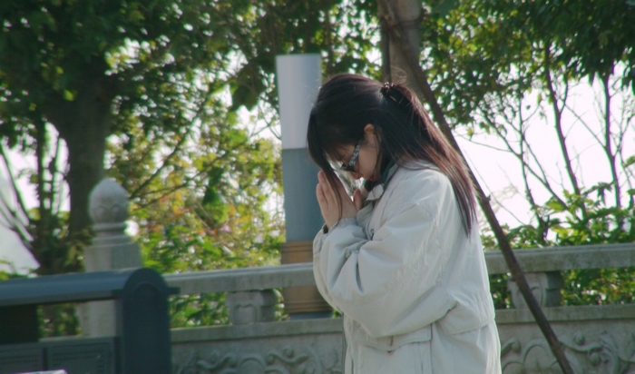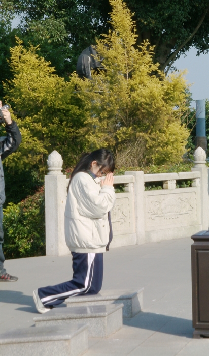 这个女孩很特别,佛像的每一面她都拜,一拜就是几分钟,很专注、虔诚。