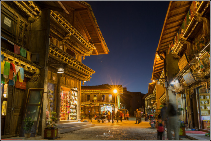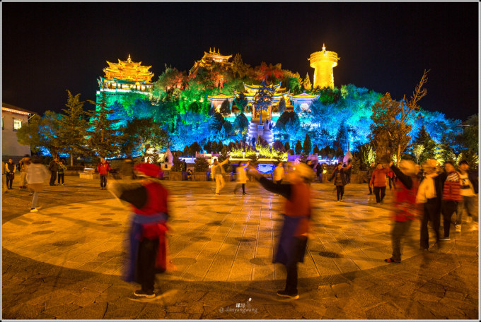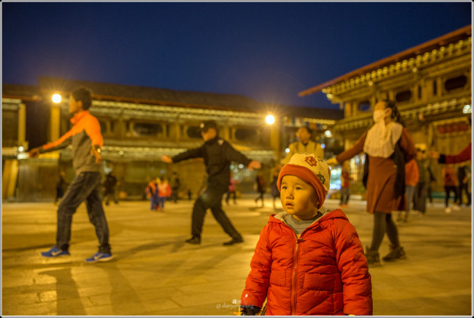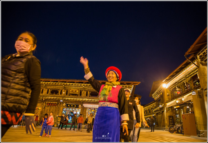 当夜幕降临,华灯初上,广场上舞曲响起,人们纷纷前来,随音起舞,是那种节奏感强简单易学的藏族舞蹈,跳舞的有中国游客、外国友人(我总觉得香格里拉的外国友人比丽江古城多是受了《消失的地平线》影响所至),更多的是当地藏人,他们身着藏袍,挥舞着长袖,黝黑的脸上洋溢着快乐陶醉的神情,这是他们每天的生活内容和方式,与我见过的内地广场舞不同,区别的不是音乐和舞蹈,而是呈现出的那种状态,在藏族人身上,我看到了更多的热情、快乐和友善,看到他们,才让我觉得已身在藏区。