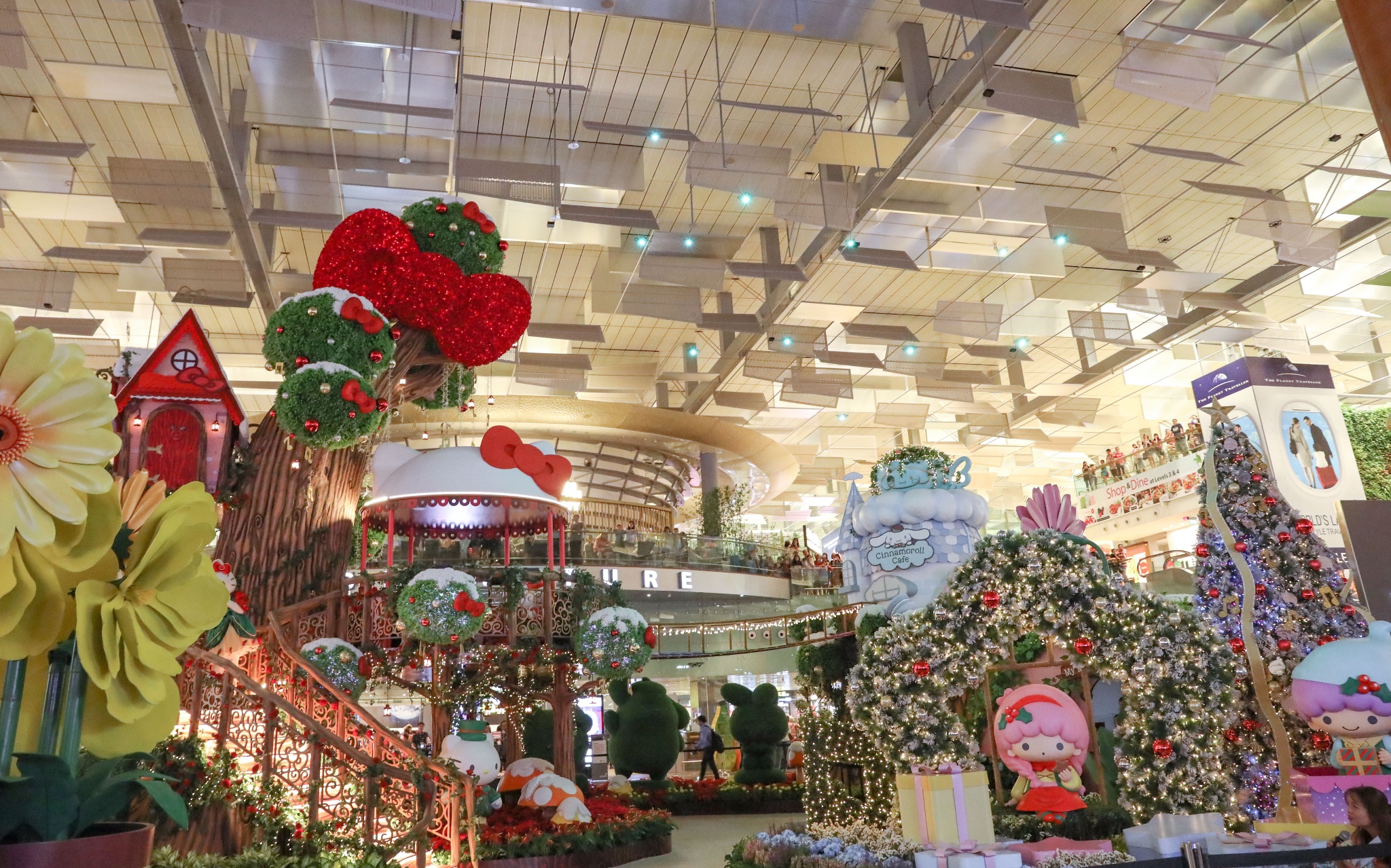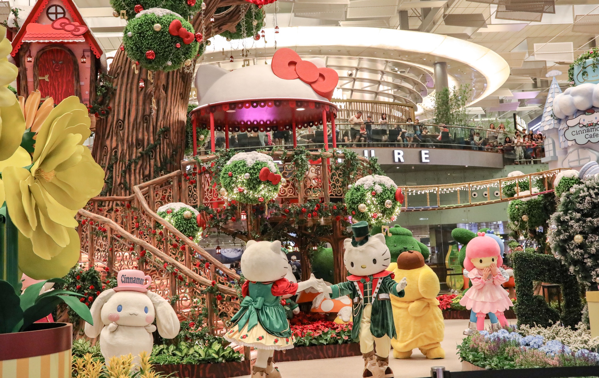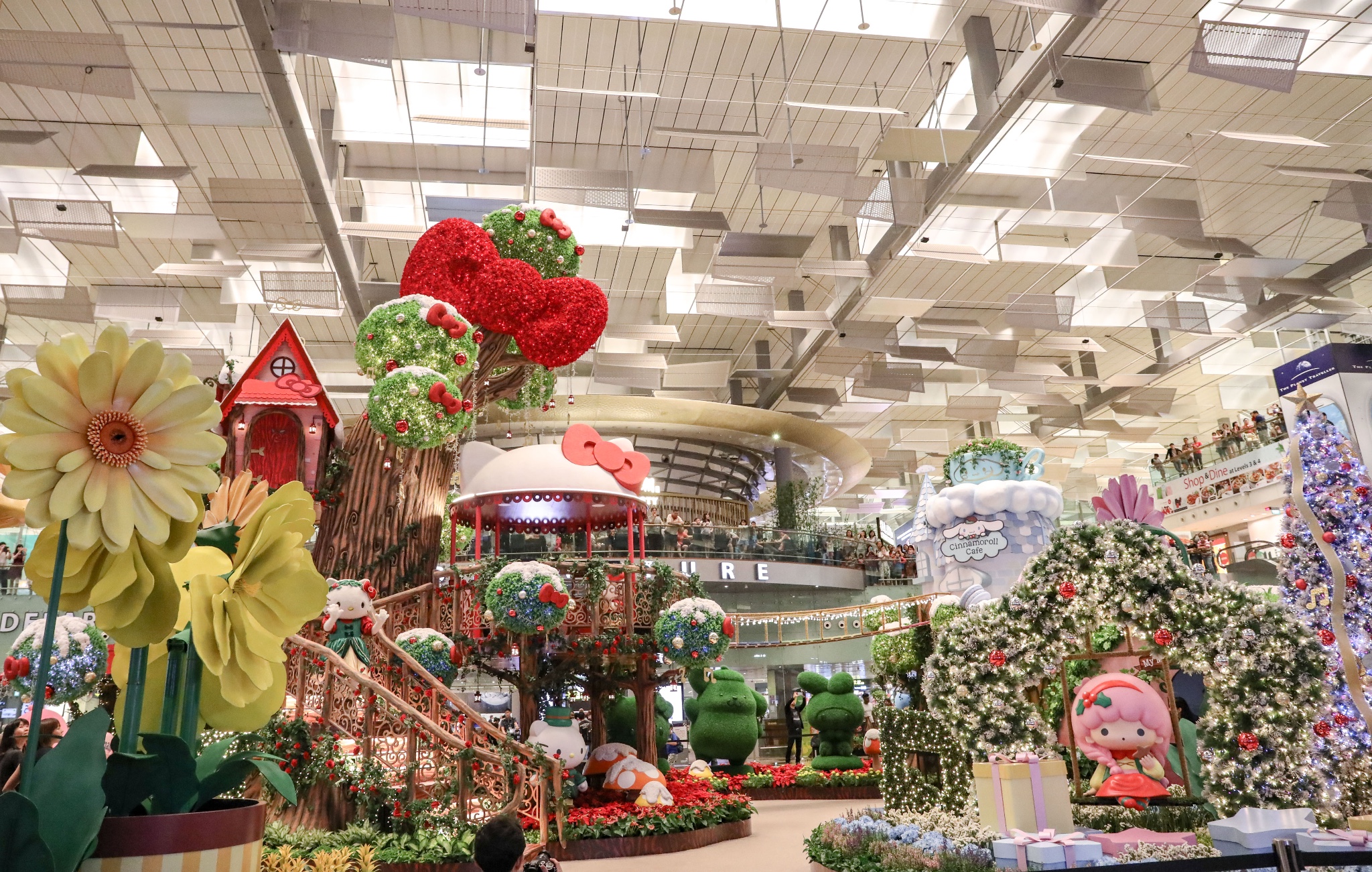 冬意渐浓,圣诞新年假期临近。这次我飞到新加坡樟宜机场转机,正好碰上Sanrio卡通家族在樟宜机场闪亮登场,风靡全球的Hello Kitty、丹尼尔(Dear Daniel)、大耳狗(Cinnamoroll)、蛋黄哥(Gudetama)、双子星Kiki 和 双子星Lala(Little Twin Stars Kiki and Lala)、美乐蒂(My Melody)和布丁狗(Pompompurin)在这里迎接来自世界各地的客人,也为我预热了一个特别的“萌”幻圣诞。