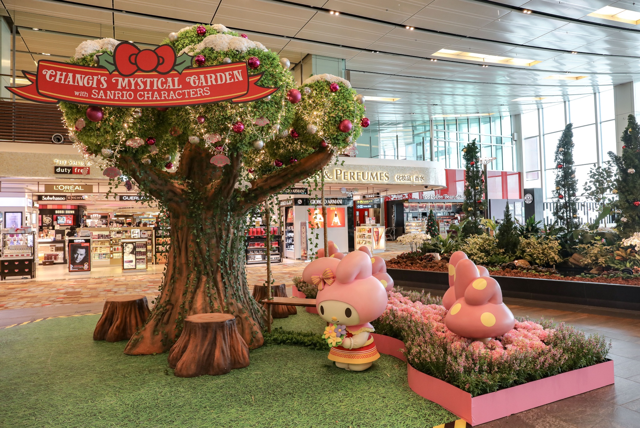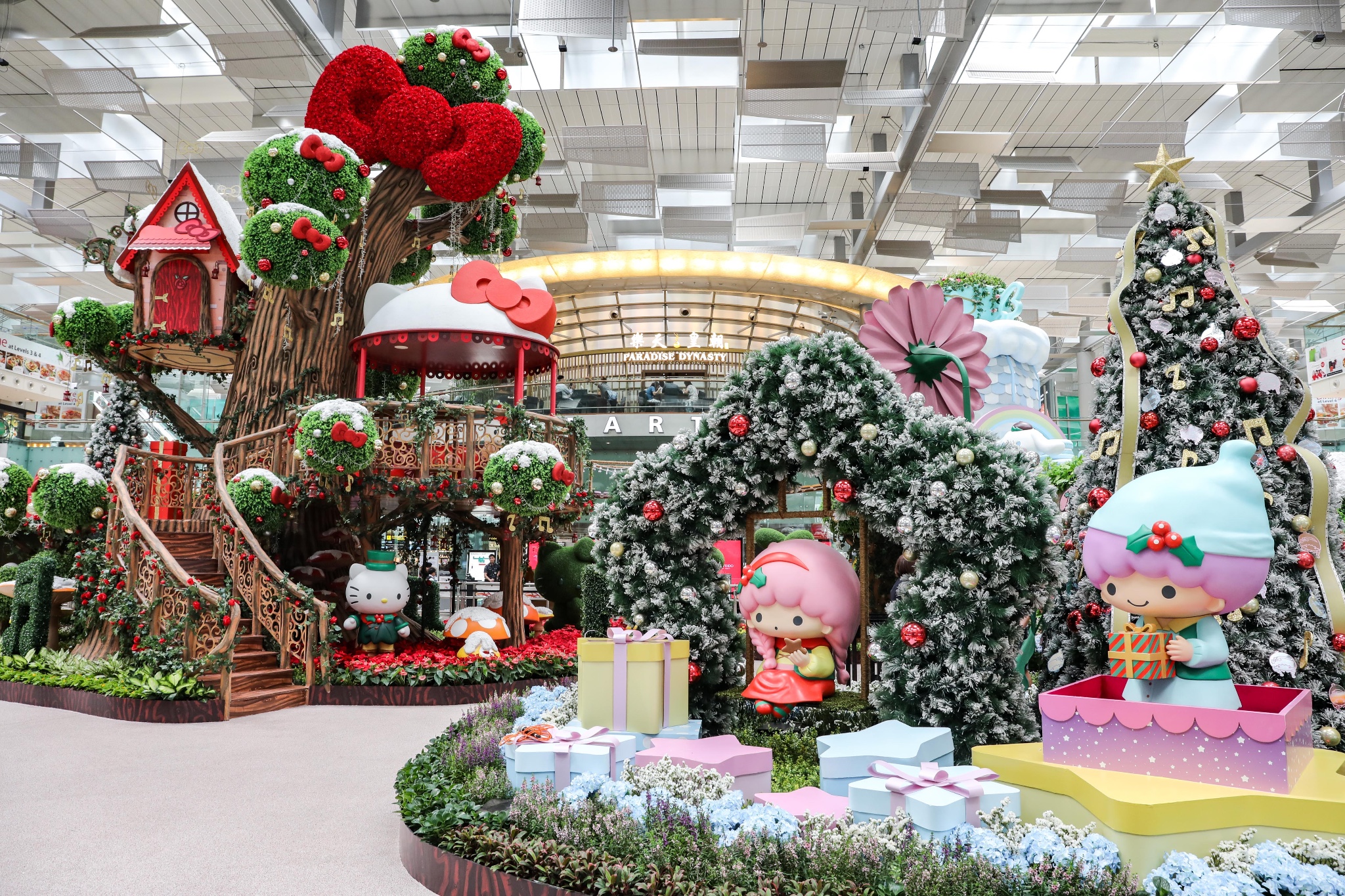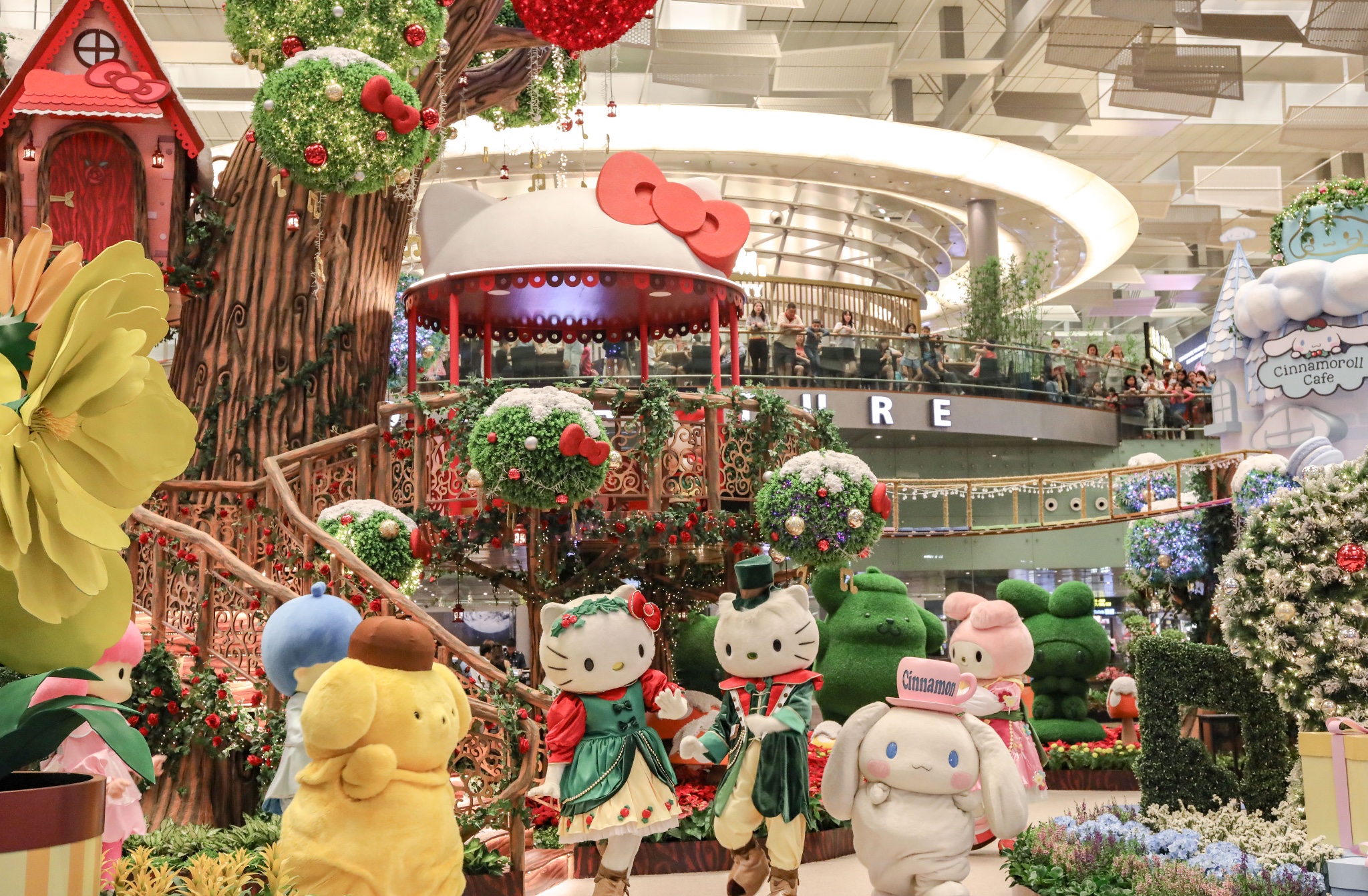 冬意渐浓,圣诞新年假期临近。这次我飞到新加坡樟宜机场转机,正好碰上Sanrio卡通家族在樟宜机场闪亮登场,风靡全球的Hello Kitty、丹尼尔(Dear Daniel)、大耳狗(Cinnamoroll)、蛋黄哥(Gudetama)、双子星Kiki 和 双子星Lala(Little Twin Stars Kiki and Lala)、美乐蒂(My Melody)和布丁狗(Pompompurin)在这里迎接来自世界各地的客人,也为我预热了一个特别的“萌”幻圣诞。