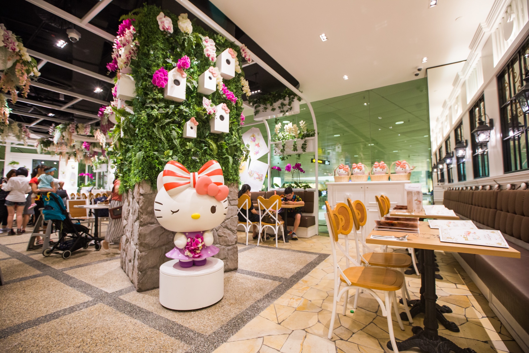 参观完彩绘飞机不容错过T3里的Hello Kitty胡姬花园咖啡厅。这是全球首家全天营业、全年无休的Hello Kitty主题咖啡馆,从店内装修到菜品设计,都将新加坡国花——兰花与Hello Kitty风格融合,餐食不仅做得精致好看,味道也非常棒,很难得有这样有颜值又有好味道的餐厅。