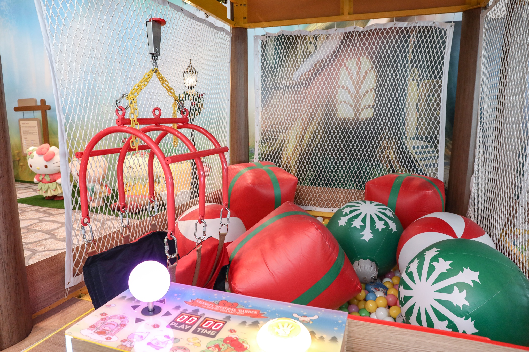 “萌”幻花园让T3变成了Sanrio家族卡通乐园。在樟宜T3离境大厅的活动区域有各种小游戏,比如扭蛋游戏、用Sanrio卡通元素印章自己设计制作一个手提包、和Sanrio家族的大型玩偶合照,还可以玩一次“真人娃娃机”,抓娃娃不再用机器,而是操控真人去抓,这里也是小朋友的最爱。