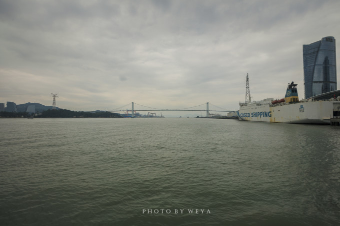 在人挤人的码头排着队上了渡轮,船缓缓驶过厦门的海域。