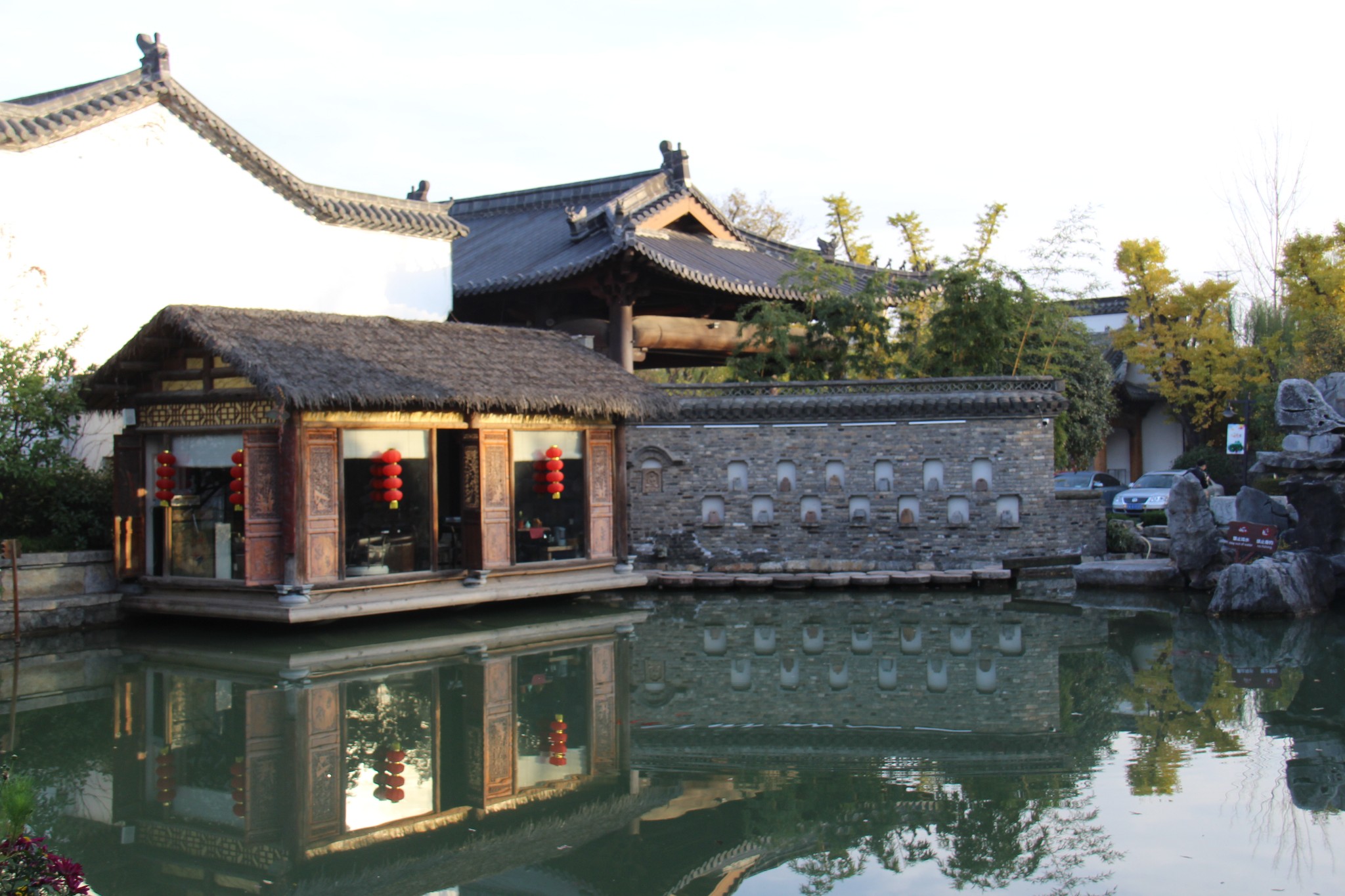 刘园异地迁建了14栋明清古建,新建的建筑也是使用了大量古代留下的砖和木雕,用传统工艺建设。