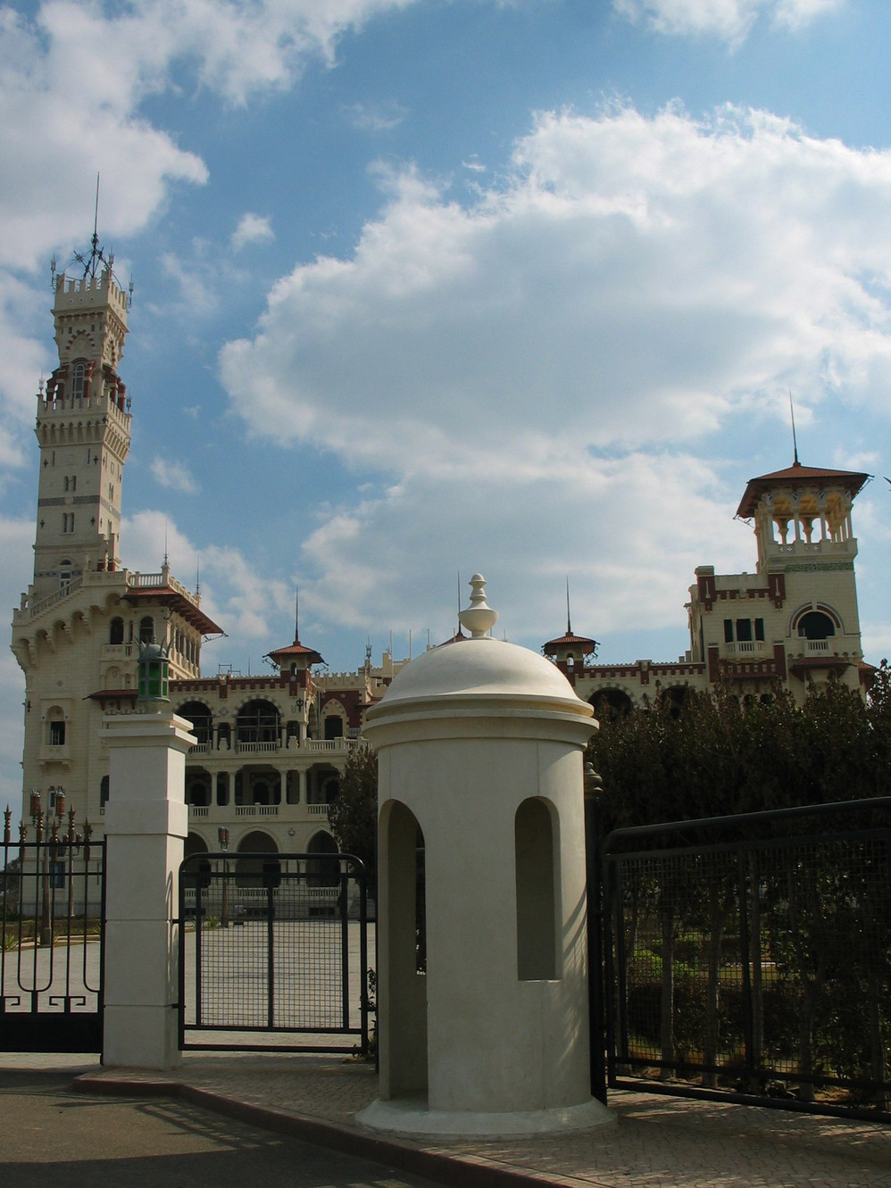 沿着海边,车行到夏宫,是埃及 最后一个国王法鲁 克的行宫,也即蒙塔扎 宫,座落在亚历山大 市东部,在地中海 海滨,夏宫周围有茂密的树林和花草,是一个独具特色的植物花园,是王室避暑胜地。园内有法鲁 克国王行宫(现为埃及 国宾馆)。王宫不对公众开放,看其外观一定要注意频频出现的主题字母F。