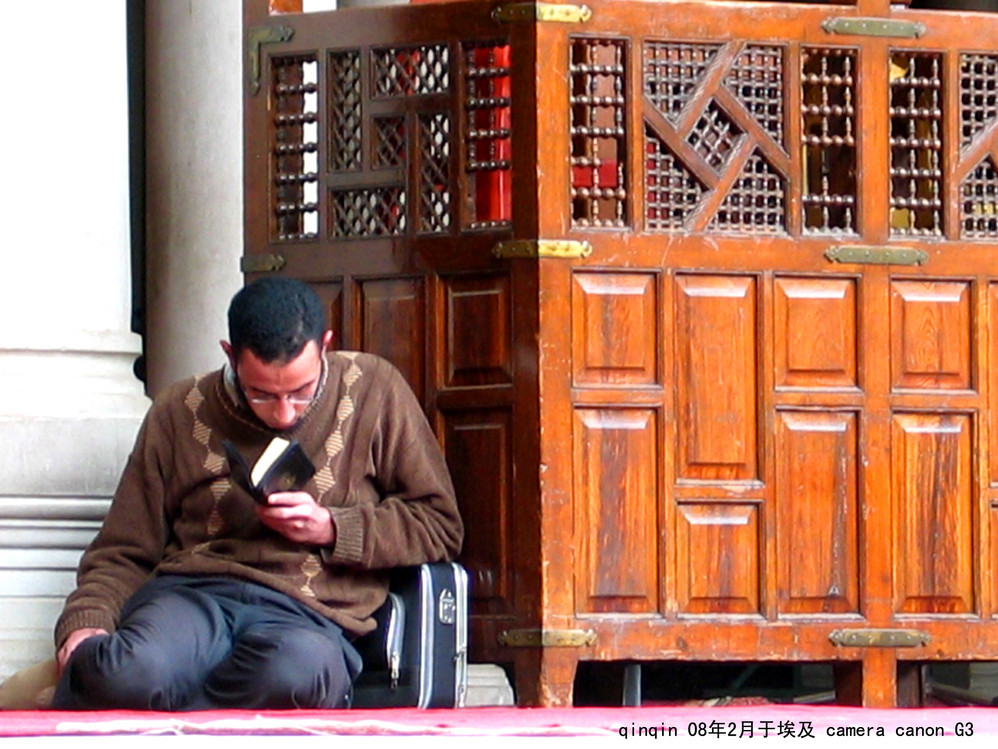 在导游带领下,我们绕过街角,来到一所并不知名的清真寺。这里不同于萨丁堡 的那种雄浑壮美,它没有太多的外来游客,没有四处的喧嚣,没有闪光的照相机,有的只是静坐在一旁仔细捧读圣经的学者,顿时使人觉得格外的清爽,心宁静而平和 ,仿佛远离了城市的喧嚣。在这里,所有的房间都铺有红色地毯,便于集会时众多教徒行礼。大家入内需脱鞋,女人更是要包住头发,身穿黑袍,把自己裹得严严实实。外来的参观者也不例外,发了人手一件绿色长袍,自己仿佛顿时变换成了魔兽世界里灵异的巫师。大家赤脚慢慢地走在里面,感受身体与大地的相通与融合,看房间里的几个小孩席地而坐,与身着黑袍的穆斯林妇女一起静静地听神职人员的讲说……