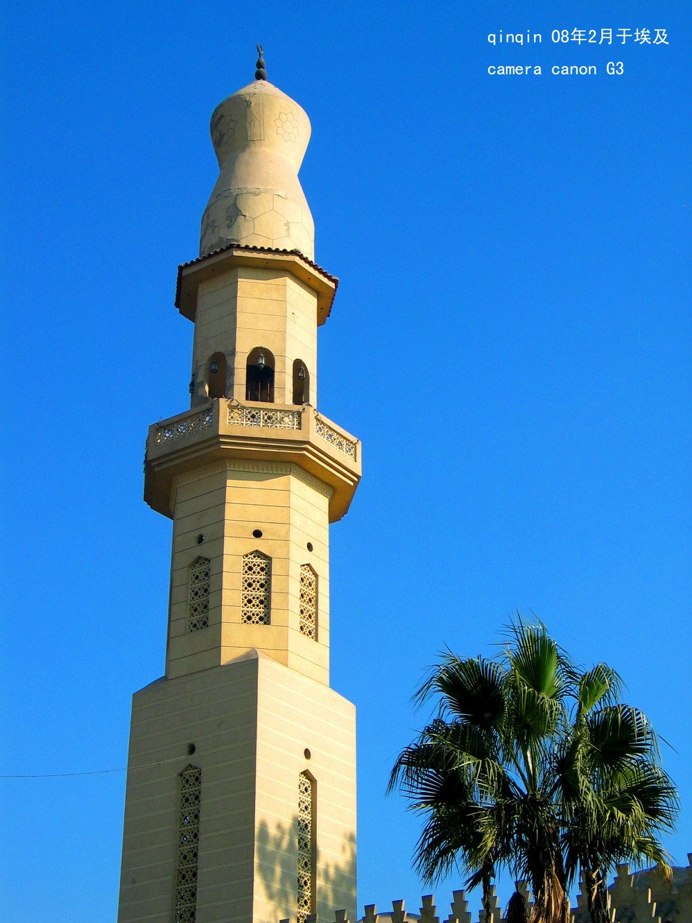 酒店对面的清真寺。 我对开罗 的第一印象,就是清真寺多。住在这座城市,清晨5点清真寺中那悠长的晨礼声唤起的——大家都还在沉沉的睡梦中,而高音喇叭里作晨礼的祷告声音已响彻全城各个角落。那声音低沉而深邃,时而悠长时而短促,仿若来自遥远地方的召唤,久久不散。