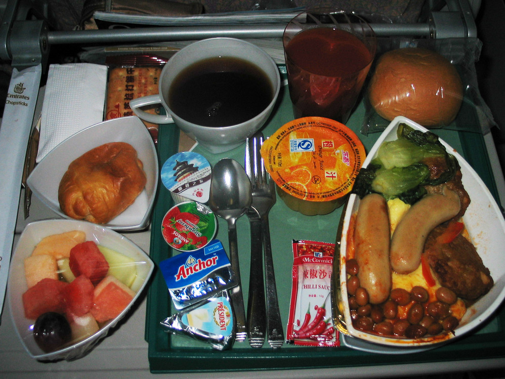 在飞机上早餐、午餐都算丰盛,吃完一点都不饿!