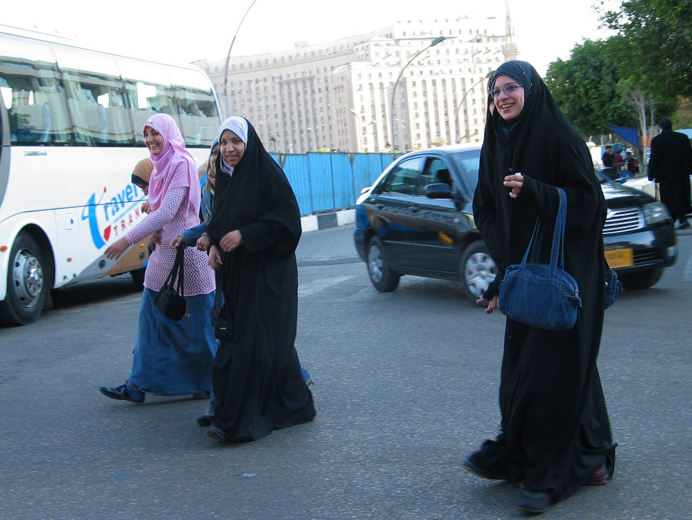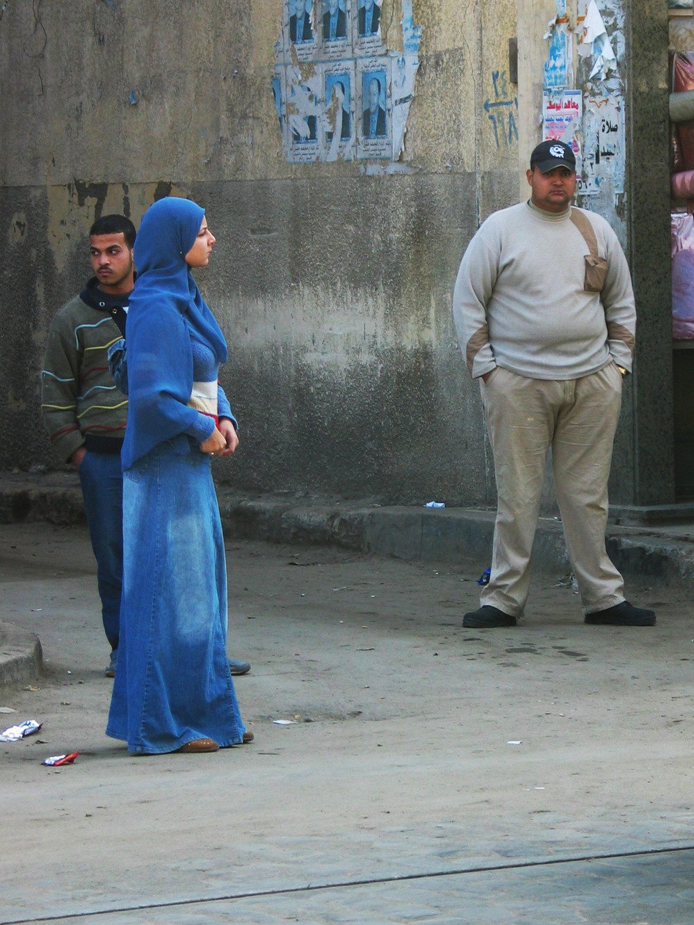 虽然没有拍穿黑纱的蒙面女人,但是这应该是中年和青年女性的典型对比:)