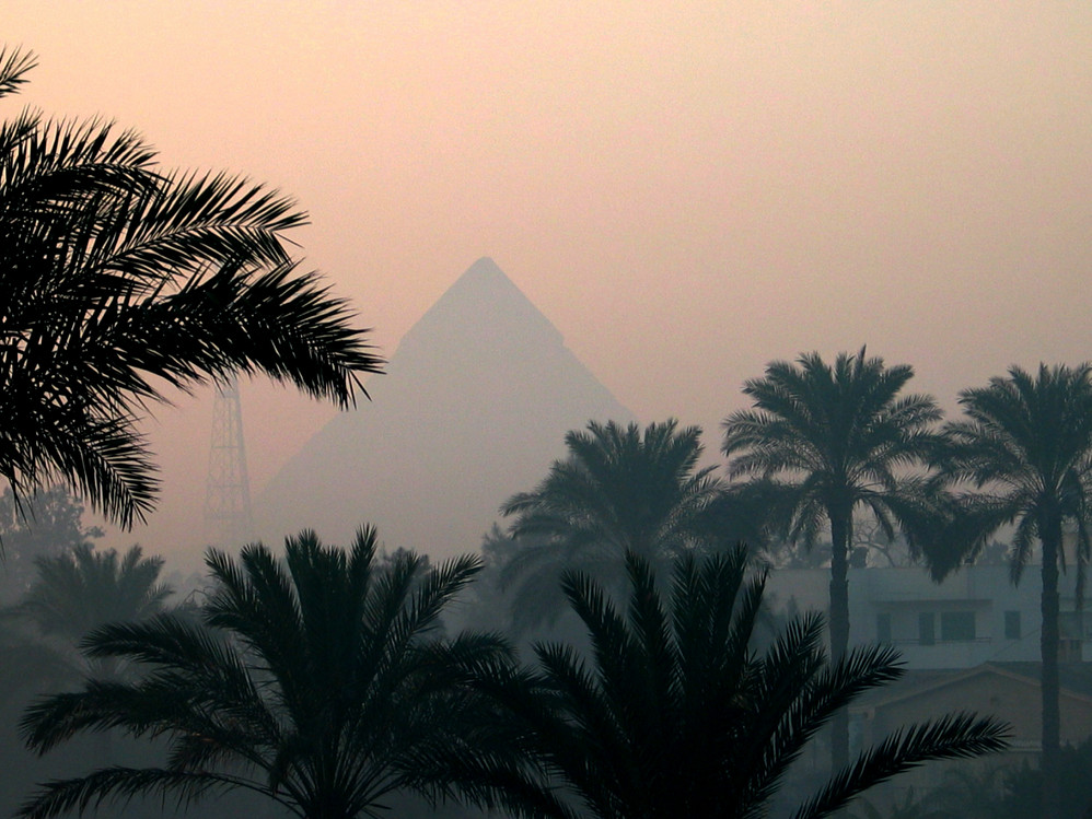 早上醒来,趁尚未出发,到屋顶,看到晨光中朦胧若现的金字塔轮廓,顿时激动了!感觉离的好近,仿佛可以伸手摸到!
