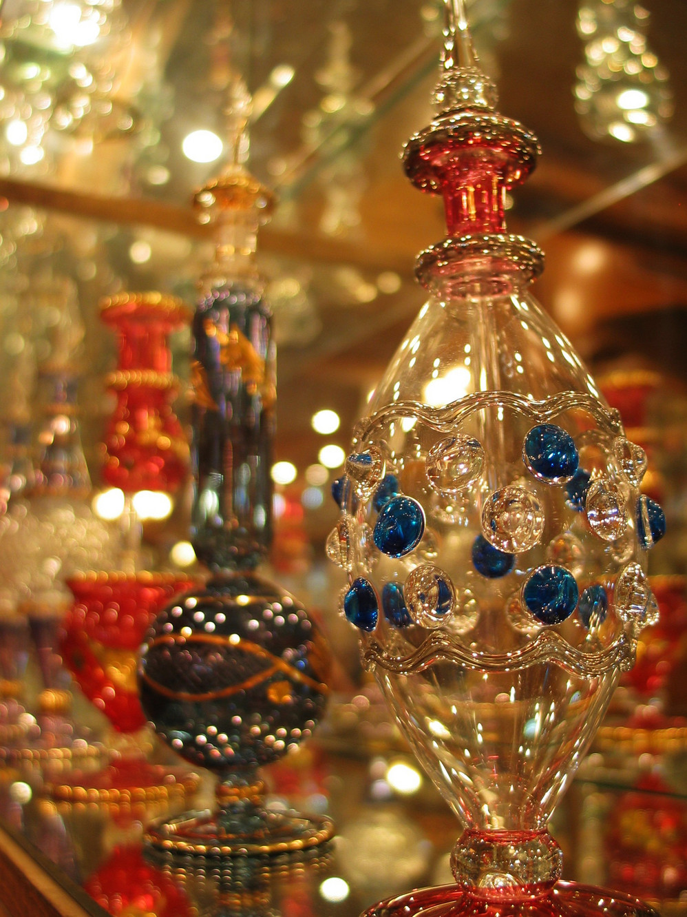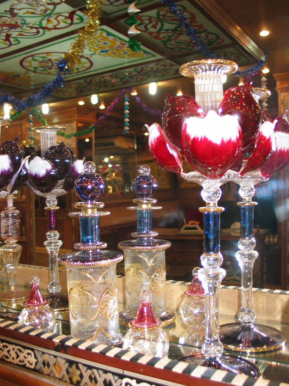这里的装饰典雅,异域风情突出,最令人印象深刻的是贝壳类的装饰屏风、家具和各种玻璃吹制的精致香精瓶。大家在导游的安排下围坐一圈,都没有接触过香精,都仔细在听商店里的小伙子讲他们的香精如何的优质:)