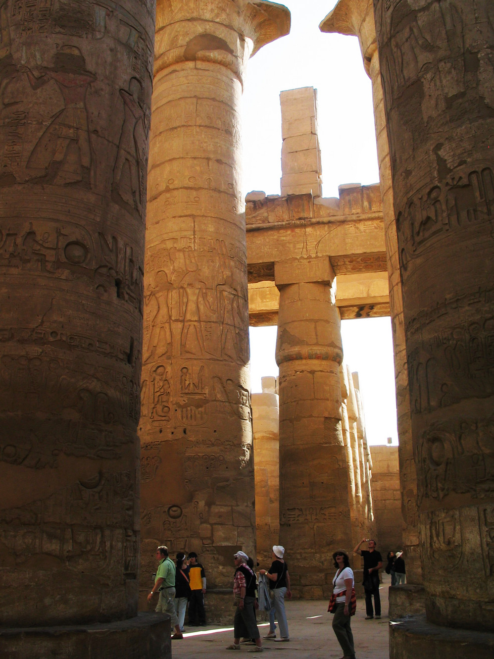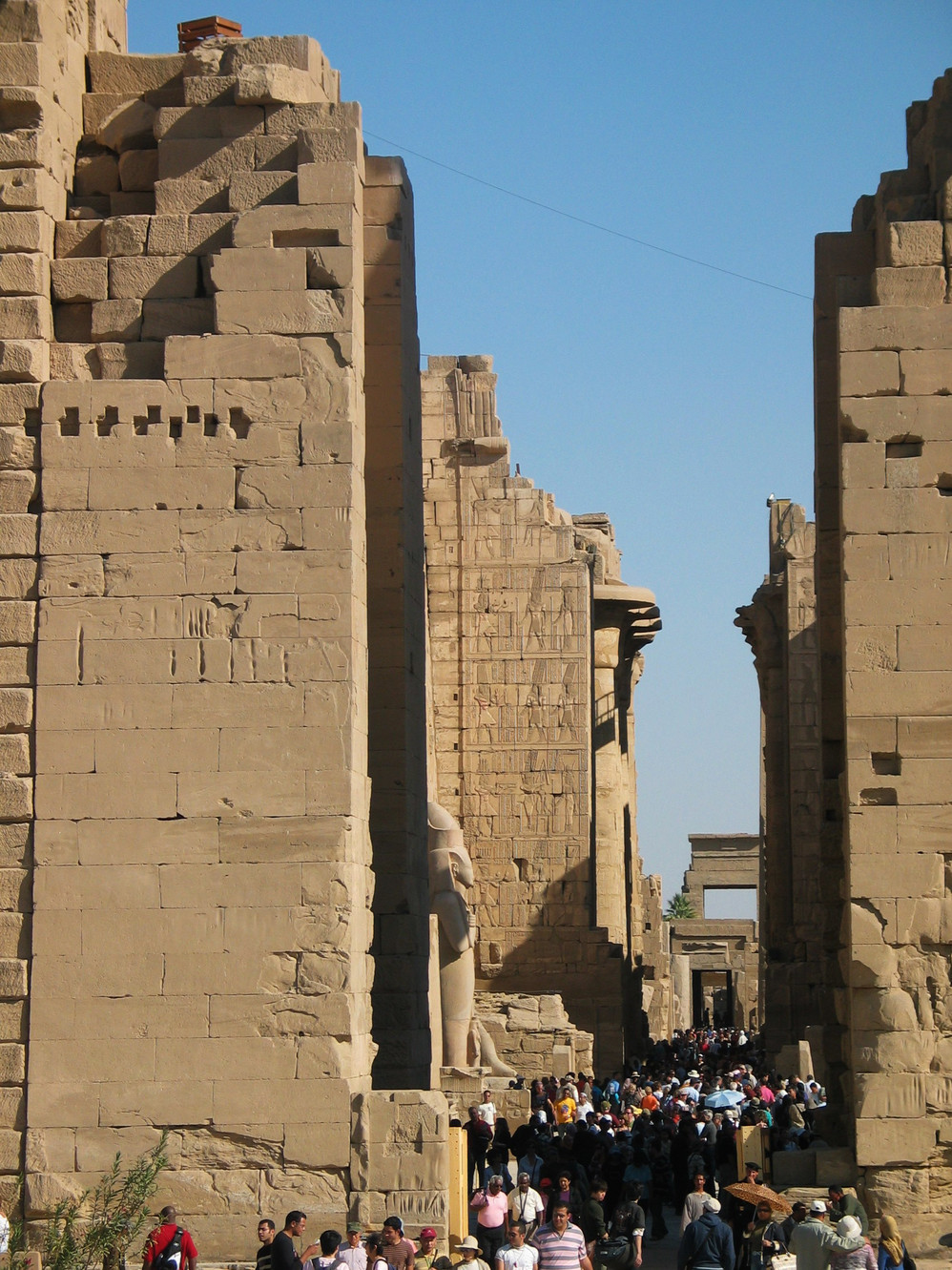 作为一名专业的建筑从业者,我认为这是个建筑史的奇迹,即使是以现代审美看卡纳克 神庙,其空间美及艺术构思给人的是一种震撼人心的感觉,更何况3000年前呢 。我的照片已经不能说明、描绘出我当时的感受了。 外观看上去很普通的卡尔纳克神庙,太阳很晒人!