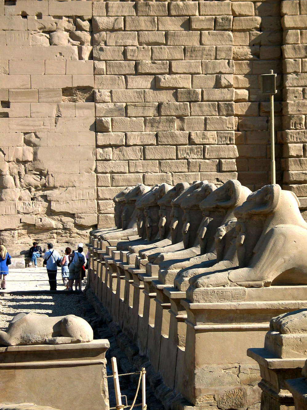 门口的石雕像是神庙前著名的公羊甬道,让我想起了北京 和西安 皇帝陵墓外的石像生(石像生的作用,主要是显示墓主的身份等级地位,也有驱邪、镇墓的含义。石像生也是皇权仪卫的缩影。)。这个也是威仪的象征吧!