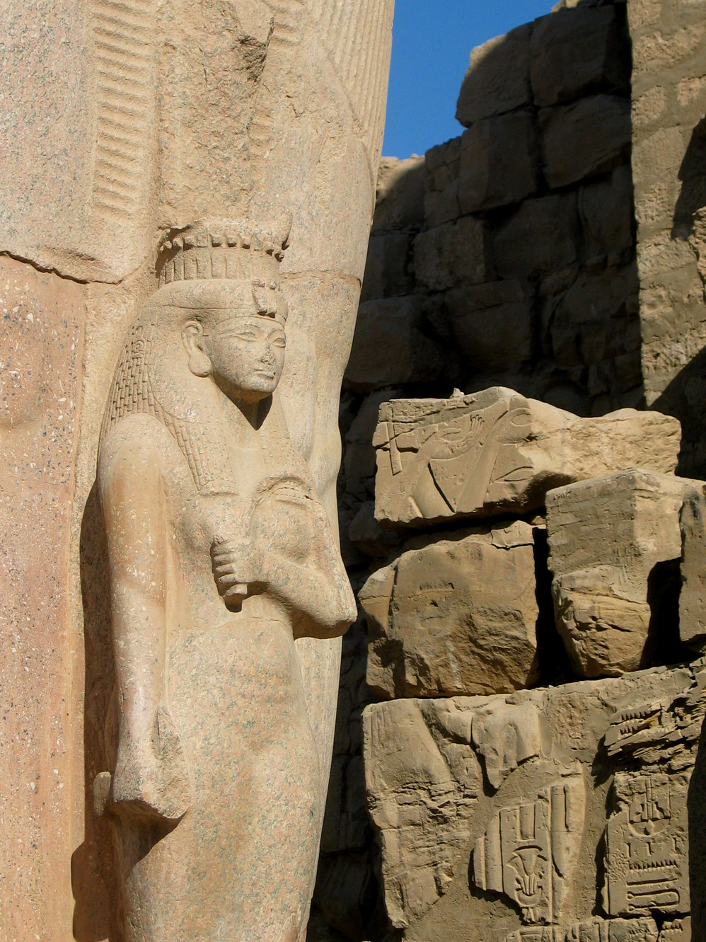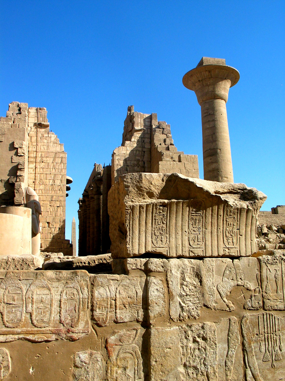 ”新王朝的每一代法老都要为卡纳克 神庙添砖加瓦,唯恐讨好神灵不够虔诚。尽管现在残留的遗迹不到当年的1/10,但是在东南西北 的神道上,依然可以辨清不同时期建筑的脉络。“