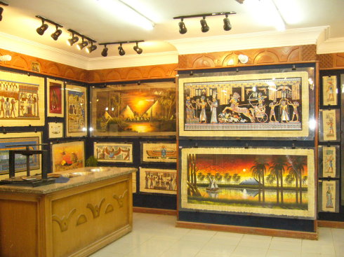 看到其他蜜蜂的游记,发现大家参加旅行团了都会在这家纸草画店安排购物。这里虽然价格没有什么优势,但是有店员会详细介绍纸画的制作工艺哦!会告诉大家怎样从原材料——剥皮——分段——压榨——编制——晾晒——成型!