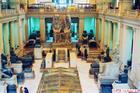 博物馆内各个展厅按照展览物品的年代和材质分类,最值得好好浏览的是位于博物馆2层的珍品展厅,几乎被世界各地来参观的人们围得水泄不通,它包含了“最著名的展品是图坦/view/163190.htm(阿蒙) 墓出土的珍宝,包括人形金棺、金樽室、金御座、王后金冠及其他王室用具。其中:图坦阿蒙金棺是用450磅纯金制成,是人类历史上最精致、最伟大的金制品。年轻的图坦阿蒙王在18岁时死去,用三层棺匣来装殓王身。开罗 的埃及 国家博物馆馆藏有最内层和最外层的棺匣。金棺金制,彩漆,雕刻细腻,具有极高的/view/2551717.htm(美学价值) 。图坦阿蒙御座也是金光闪闪,座椅的正面两侧各有一个金制的狮子 头,扶手为蛇首鹰身的雕像,分别代表上下埃及 的王权。”