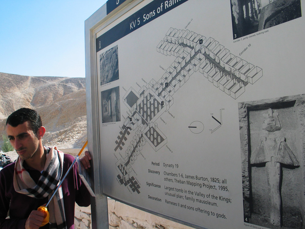 据说,法老为了保持墓穴的隐蔽性,往往连子孙都不告诉具体地点。所以有的孙子建墓时,不小心就把爷爷的墓挖开了。厚道些的可能拐个弯再建,不在乎的就穿旧墓而过,懒惰的直接把祖辈的名字从壁画上凿去换上自己的……