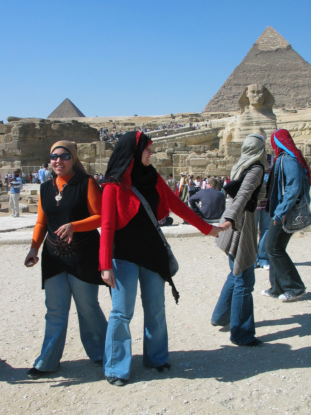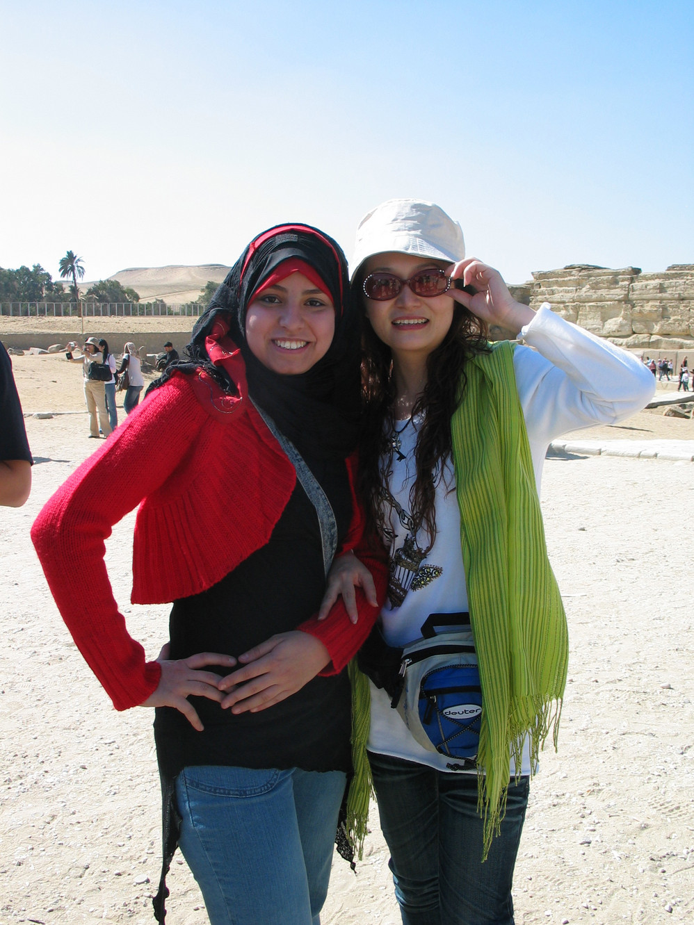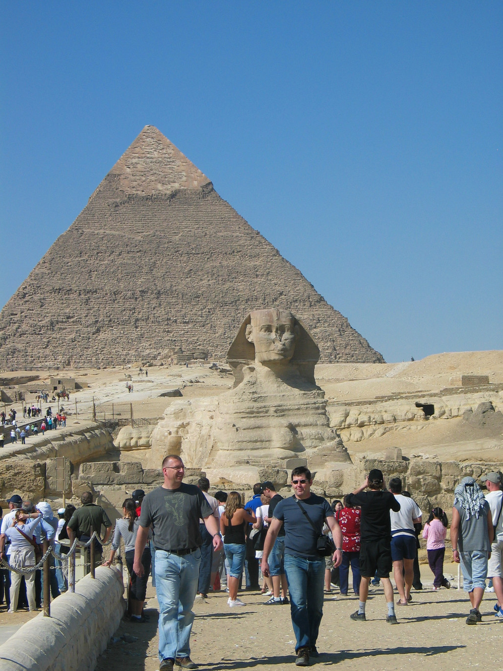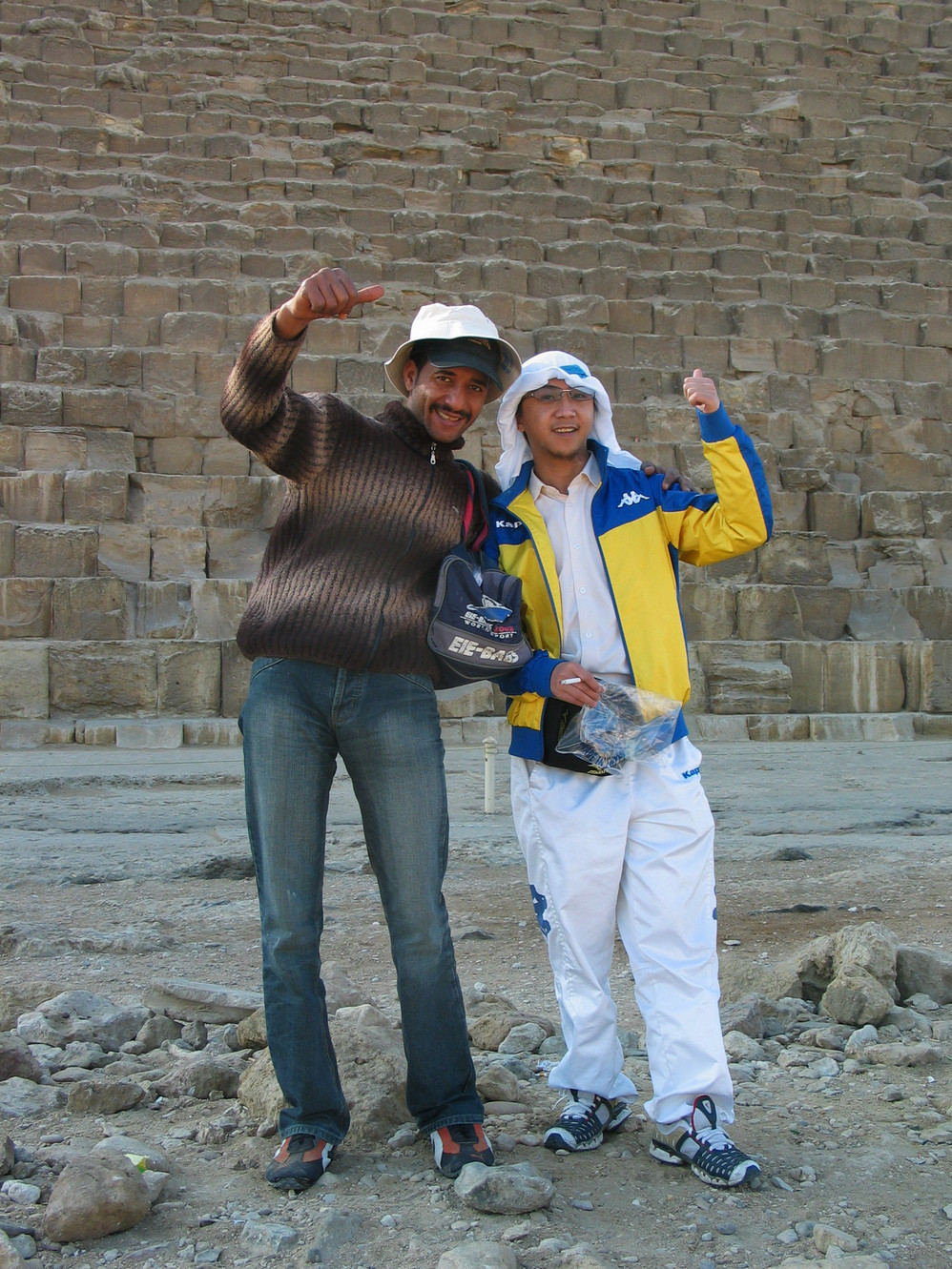 好吧,我认了。幸好我随身衣服里有16美元的零钞,我摊开手,很无奈的表情笑着说:oh,我身上只有这么多,我的朋友那里有钱,我去拿了给你。我递给他16美元,嘴里念叨着:我去找朋友拿了钱给你。从他手里一把抓了自己的相机,推开其中一个围着我的小个子埃及 男人,冲着跑向离我最近的一个同事。悲催啊,他离我至少有100米远——在这空旷的金字塔旁,大声叫喊是不会有太多人听见的,跑是最好的办法。