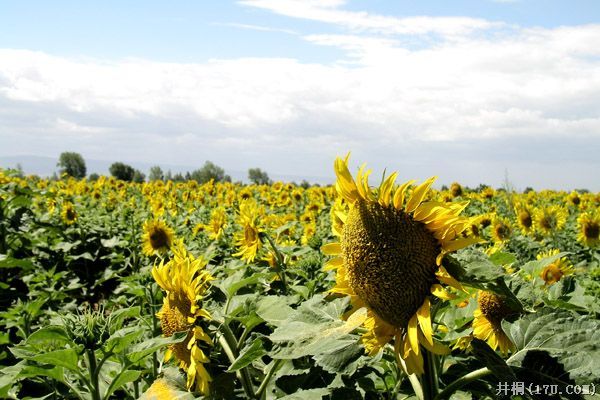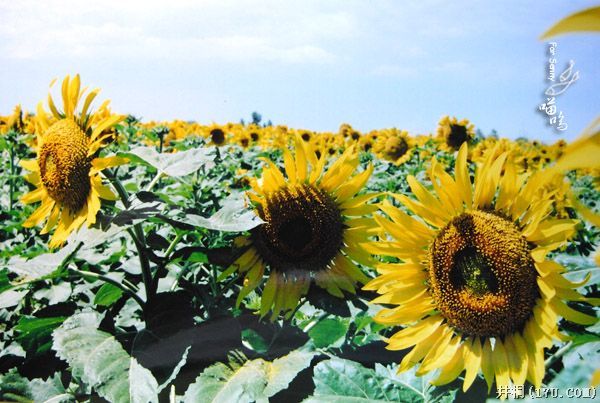 看到成片的向日葵地,我们当然不肯放过,而后来经事实证明,这片向日葵的花盘子其实是不够饱满的,但当时我们已经很满足。