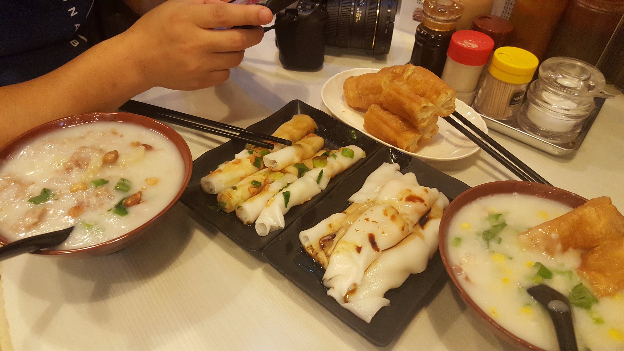 今天狗仔破天荒八点多就起来了,当然不是因为时差,是因为今天有橄榄球重要赛事,要在酒店在线看。既然早起了,我们来到了酒店对面的连锁餐厅大师傅粥品,皮蛋瘦肉粥,艇仔粥,虾肠,虾米肠,样样都甩开纽约中国城几条街,味美价廉,相当推荐!