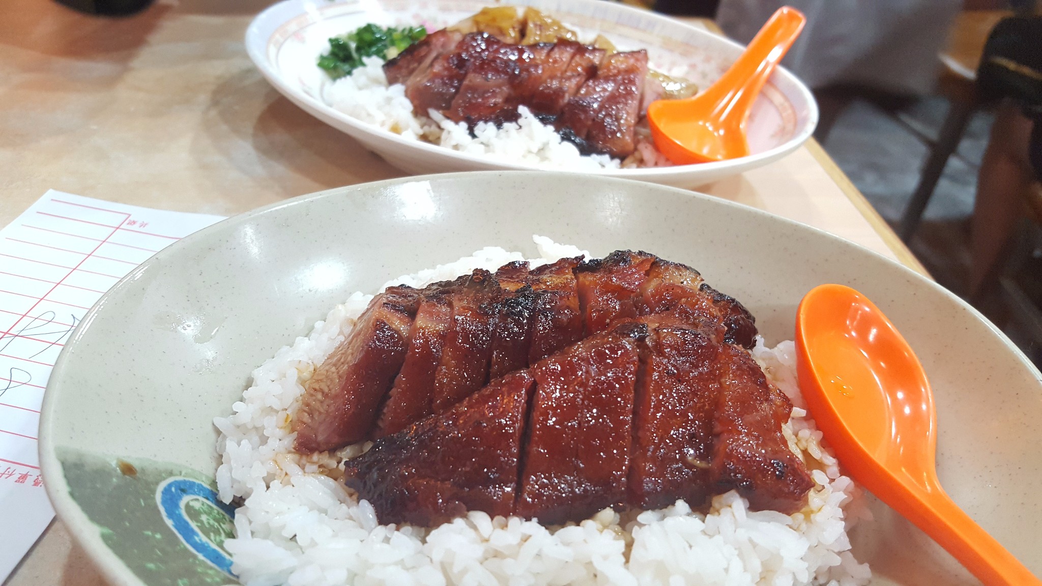 地铁来到中环,中饭来到了大名鼎鼎的一乐烧鹅,店门口零星有几个排队的人,我们等了一会便有座了。里面黑压压坐满了食客,很多出来解决午饭的中环上班族,大家都低头埋头苦干,少有交流,感觉像一个生产线,上菜-点菜-吃菜-结账,一分钟都不耽误。我们点了一份叉烧饭,一份叉烧鸡双拼,可能因为吃饭环境压力很大,并没有品出绝世好味。