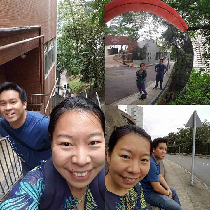 开心的一天还在继续,告别宇诗,就要开始今天的又一重头戏了-登顶太平山。穿过中环来到太平山缆车。不出所料,门口排起了长蛇阵,因为实在讨厌 0 位移,我们选择了更艰难的上山方式-登山!顺着索道旁边的Tramway Path爬了起来,爬山本身并没有非常困难,但是因为我的猪队友狗仔同志,大体重负荷,除了自己什么也拿不动,我只好背着自己的包和他十磅的相机包,吭哧吭哧还有一路前前后后跑,鼓励他继续努力。