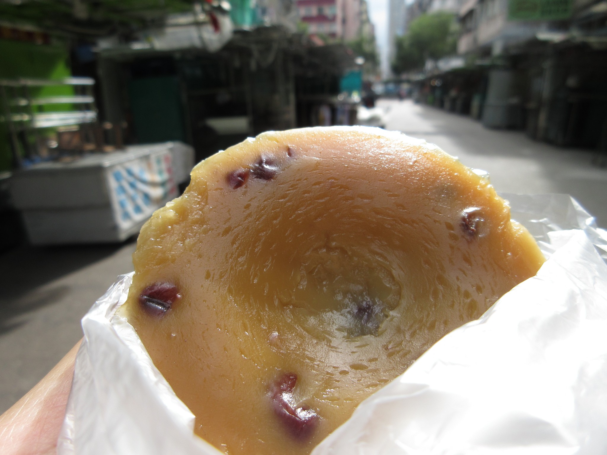 又沿着弥敦道一路向北,经过太子来到了文武双全的深水铺,我觉得深水铺比起大楼林立的中环,行人涌涌的旺角,更多了一份市井和人情味,杂货铺,熟食档,校服定制店,朴素的成衣店,街上大多是当区的居民。当然我这悠然的转来深水铺不是偶然,而是为了心心念念的钵仔糕,位于深水铺巷子里的坤记糕品,买了一个咖啡色的红糖钵仔糕和一个白糖钵仔糕,好开心,我的粤语第一次没有被识破,成功付钱!钵仔糕味道淡淡的,很清香,很适合做饭前小食和饭后甜点。