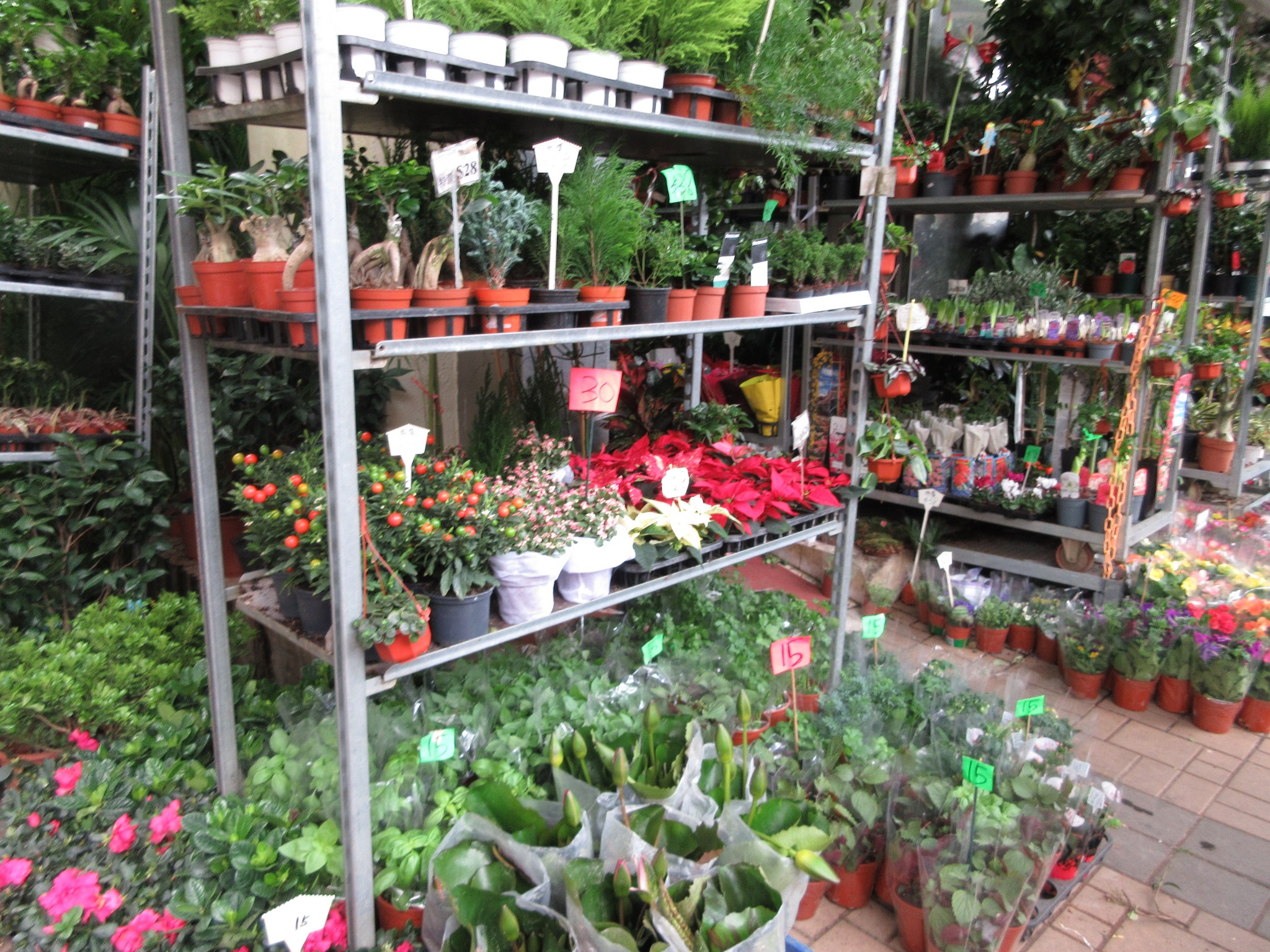 因为狗仔的体力已经在昨天太平山登顶的过程中消耗殆尽,今天是他申请的休息日,没有安排太多行程。早上又不出意料早早得醒来,闲来无事,出门暴走,假装一个出门行街的香港老太太。经过花园街,大大小小的花档陆续摆出了各式各样的花草。