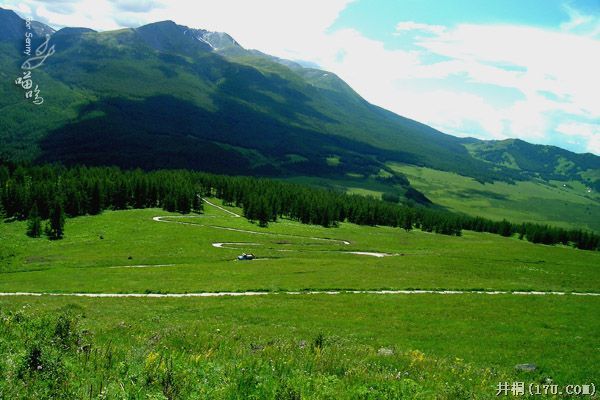 那2块绿洲,看起来就像脚印,据说那是因为喀纳斯美的不得了,让神仙也舍不得离开,所以留下了自己的脚印。。(看来神仙很环保嘛,只留下脚印,还变成了美丽的风景)