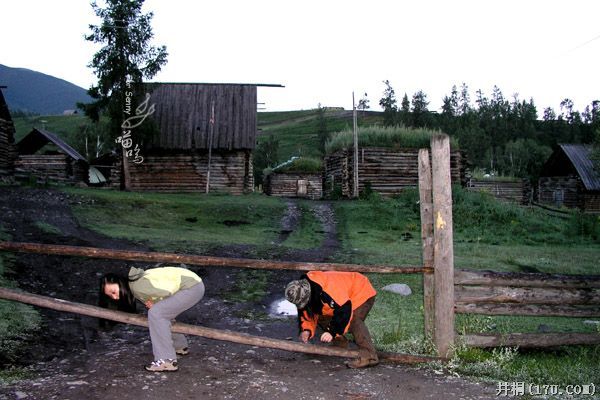 这就是我们住的“小庄园”的大门,天晚了,就把木头架起来。不过嘛,一点都不妨碍我们想出去晃晃,“我钻”