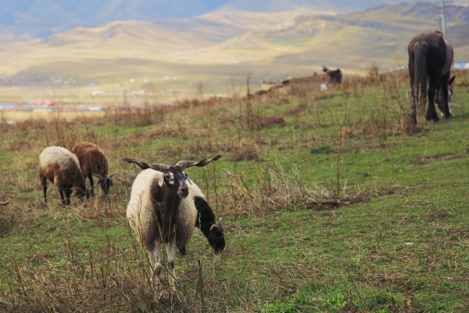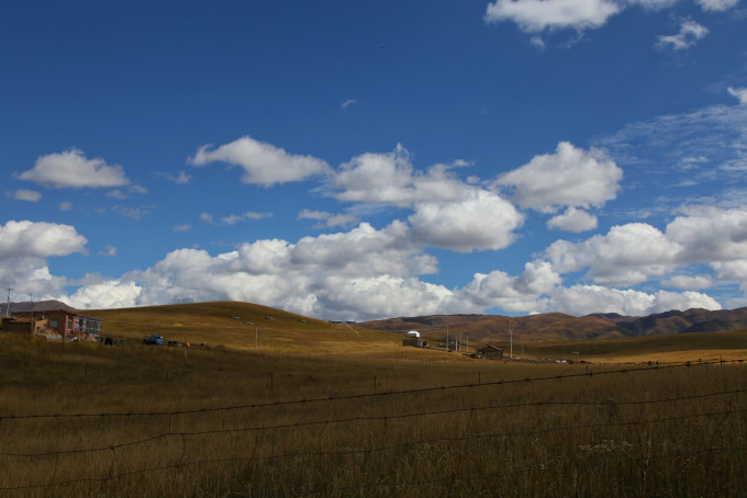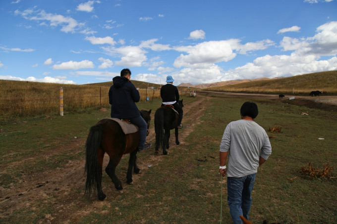 和小伙伴吃过午饭就直接打车去了桑科草原,来回大概30元。因为十月底草原上已没有新鲜牧草,为了保证牧民的牲畜能有足够的草料顺利过冬,桑科草原被铁栅栏围了起来不允许入内,师父直接开车把我们带到了一家牧民家里,骑马,吃糌粑,和酥油茶,体验藏民生活