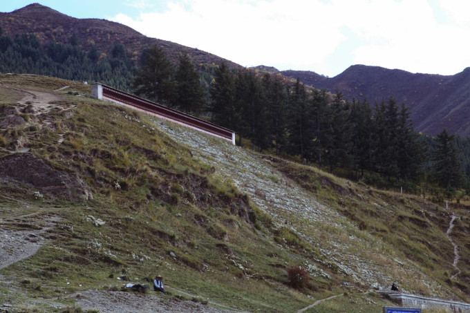 吃饱喝足我们就打道回府咯,回去路上就路过拉卜楞寺,我们直接让师父把车停在了晒佛台附近,阳光刚刚好,爬到晒佛台旁边的小土坡上先欣赏一下拉卜楞寺的全景