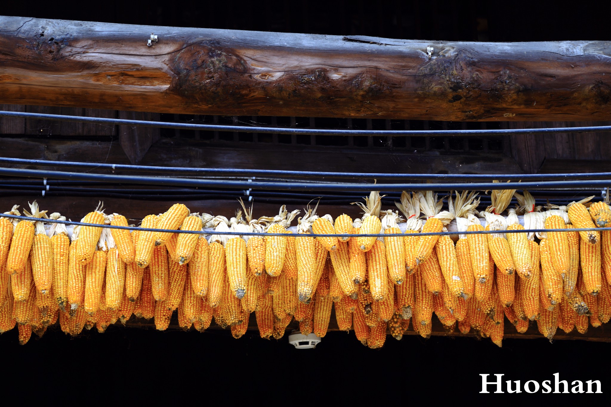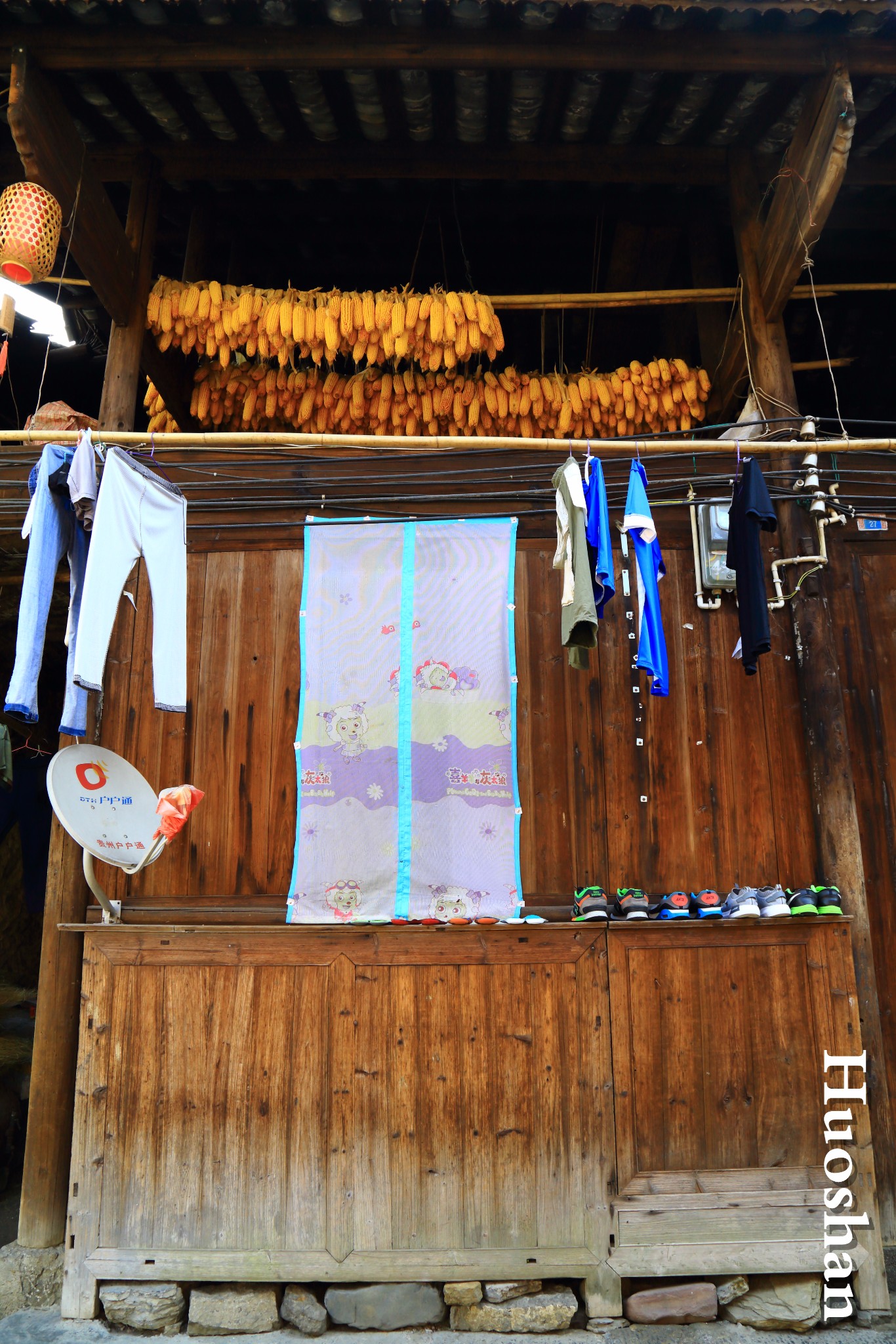 此时正值初秋季节,不少人家的屋檐下挂着成串的玉米棒。