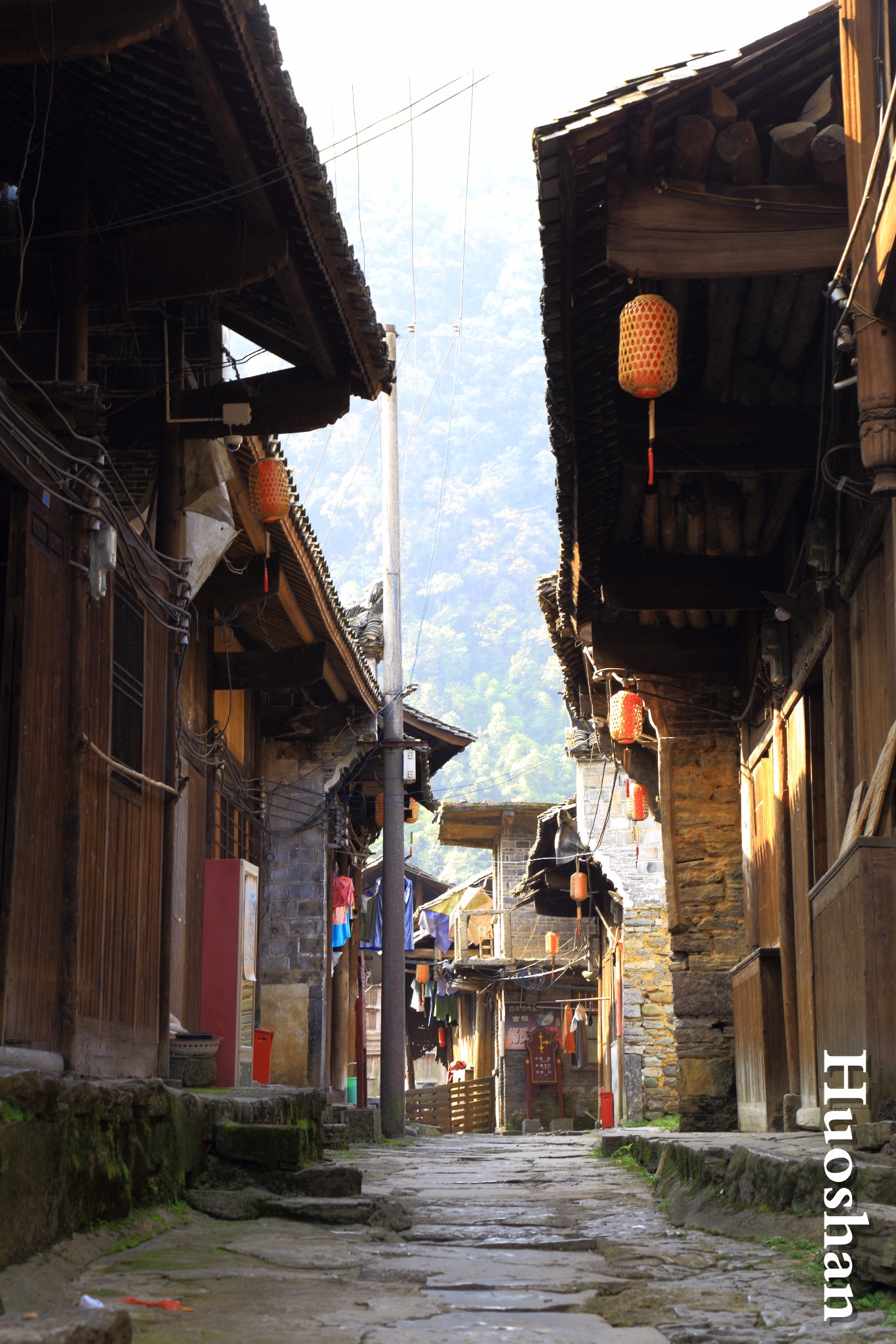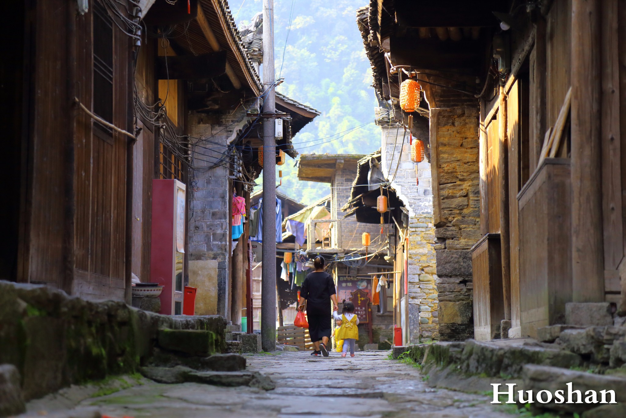 街下排水,街上行人,石板路历尽沧桑,光可鉴人,忠实的记载着寨英的似水流年。