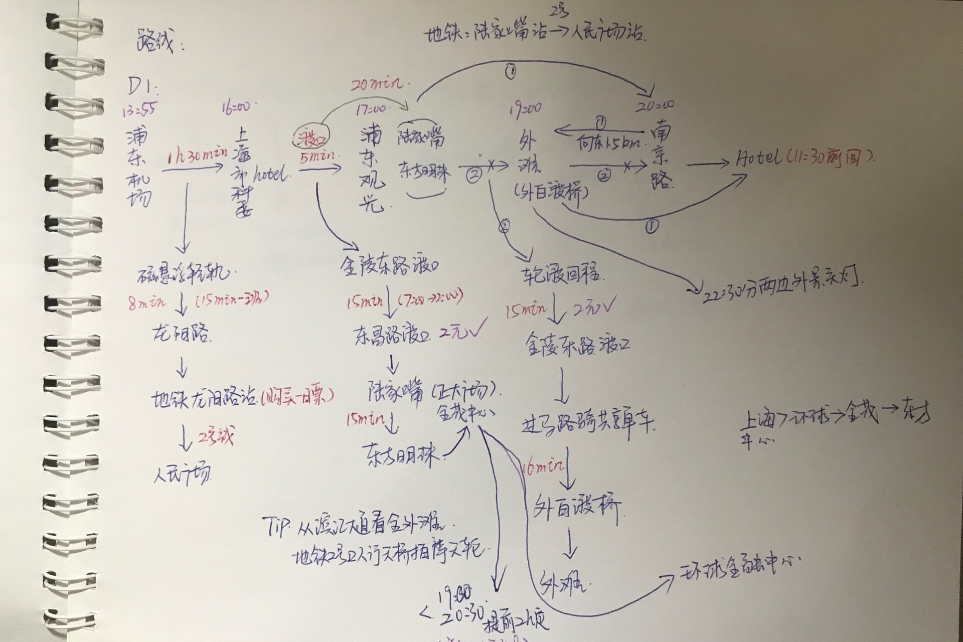 因为订不到17:00那个时间段的自助餐,所以只能定19:00这个时间,所以只好先从南京路打卡,这样对于我住宿位置出发来说,就有点逆了,因为我离外滩更近些。上面是我手写的计划,按照那样玩的话好些,毕竟南京路就是条步行街。