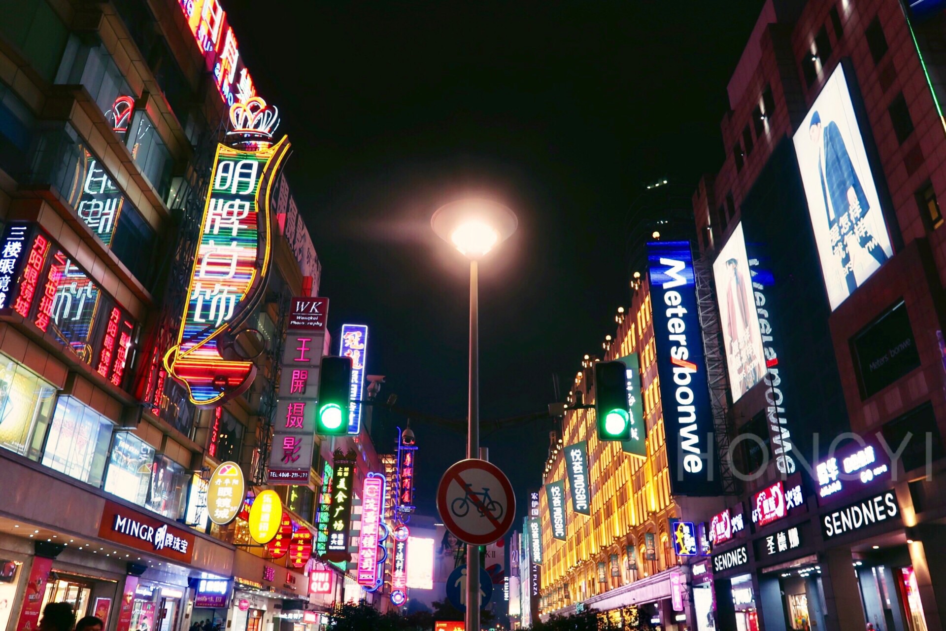 相对于白天来说,晚上的时候霓虹灯一亮起来很好看。