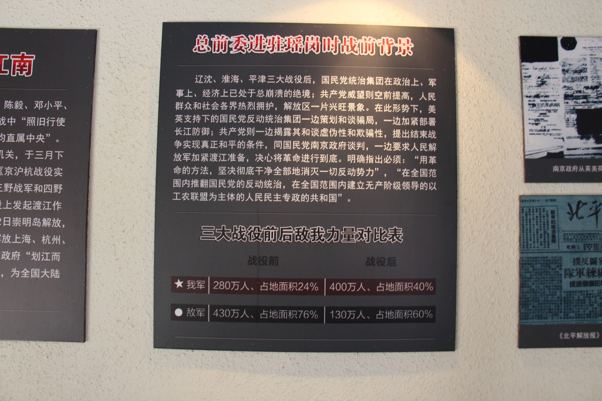 我之前看到过采访当地村民留下的材料。1948年国民党军短暂驻扎瑶岗的时候,抢劫村民,又在村里抓壮丁,因此总前委入驻瑶岗村之初,看到那么多全副武装的士兵,对之前的事仍旧恐惧痛恨的村民们都躲在家里不敢随意出门,遇到住在家里的解放军也不敢搭话。对于住在地主王景贤家族住宅中的共产党高官只知道是大头头,却连正眼也不敢看,走路都不敢靠近那里。但是入驻这里的解放军军纪很好,他们用的食物大多都是从外面运来的,就算用了农民的东西也会照价付钱,而且每天都给房东家打上足够的柴草,水缸里打满水。渐渐的村民和解放军的关系就逐渐亲密起来,也开始和解放军战士聊天。到了解放军撤离的时候,村里很多人都送几包花生米和瓜子给解放军。