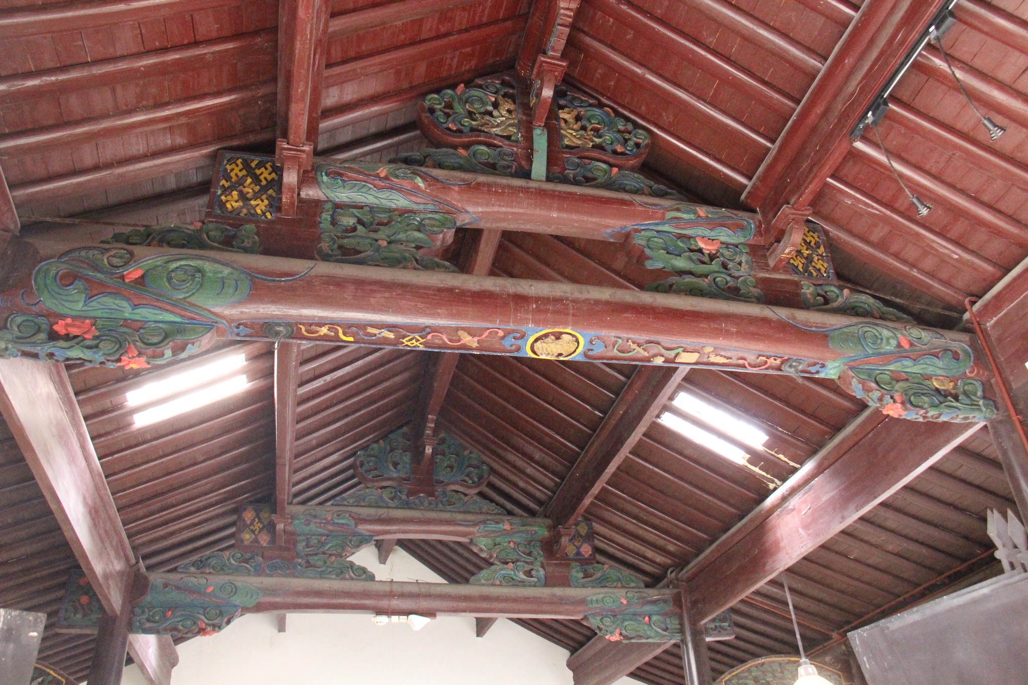 这个祠堂雕梁画栋,用了当时江淮地区比较少见的彩绘。