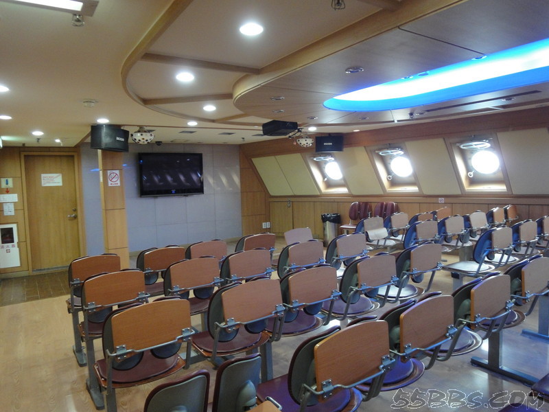一出关就算真正进入了港口的范围,一眼就能看到停在不远处的天仁号邮轮,据我目测也就不过百米的距离,溜达着就能过去。但是按照规定我们必须坐一小段摆渡车才能上船,摆渡车就是一辆公交车改的,连人带行李全搬上去,到登船口了再全搬下来,呼呼,累死ME了~ 提着大箱小包地上了船,出示船票进到船舱,天仁号的内部终于跃然眼前,按照船票上标示的床位找到了自己的位置Array